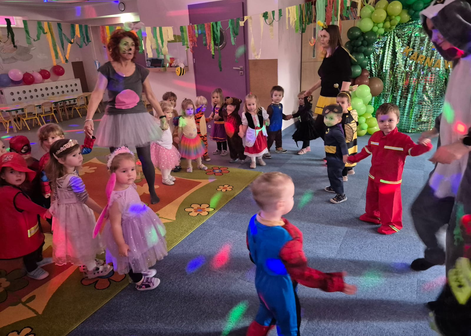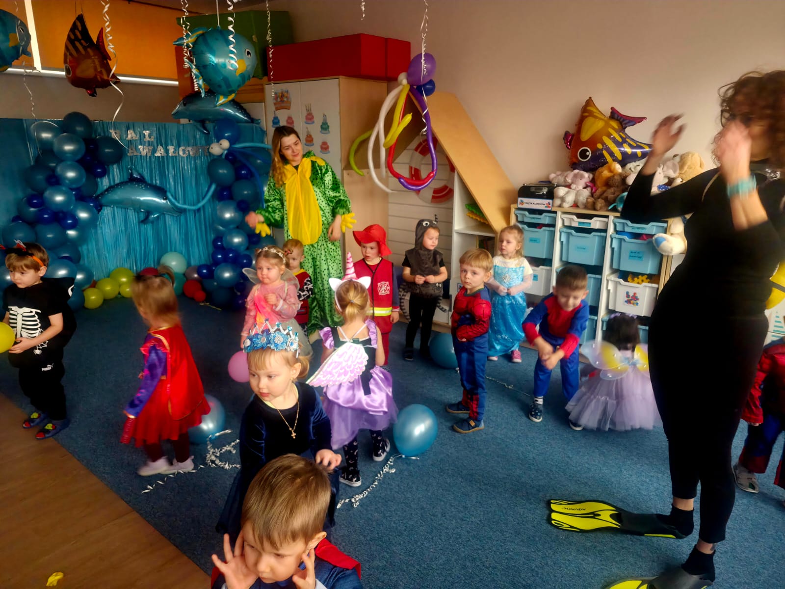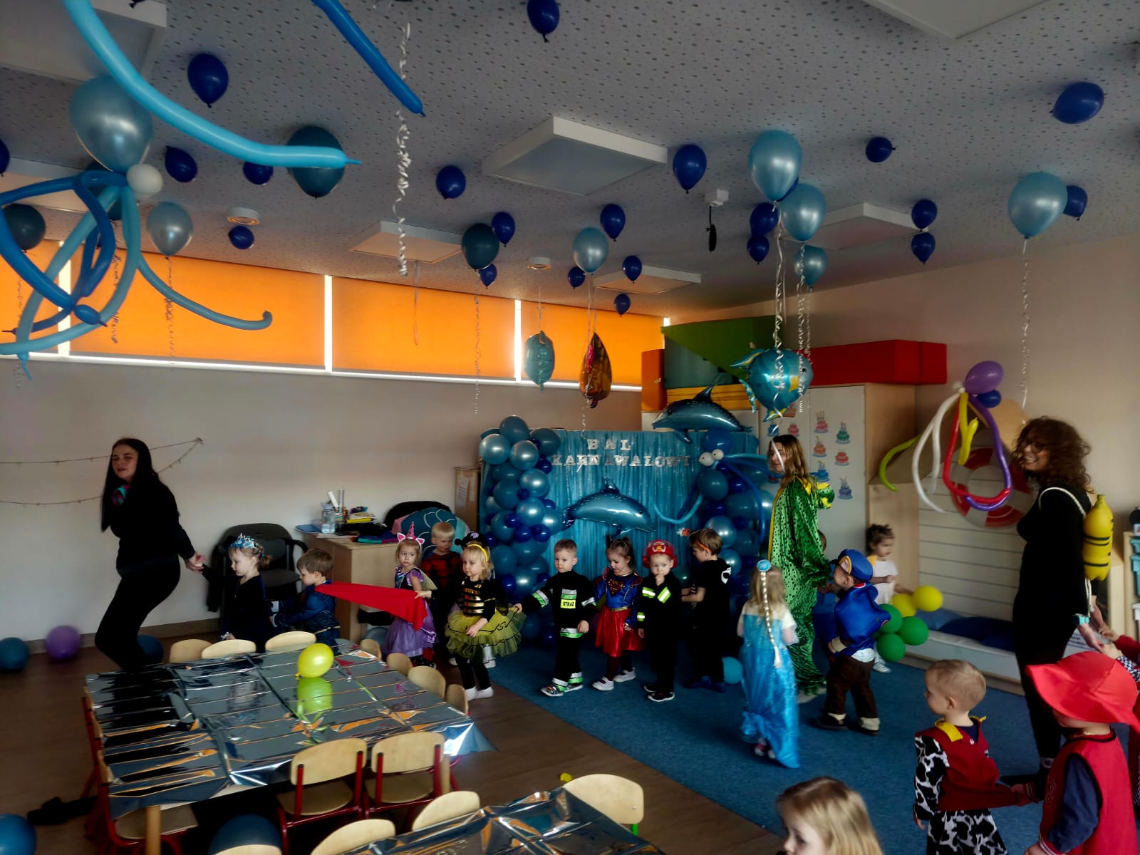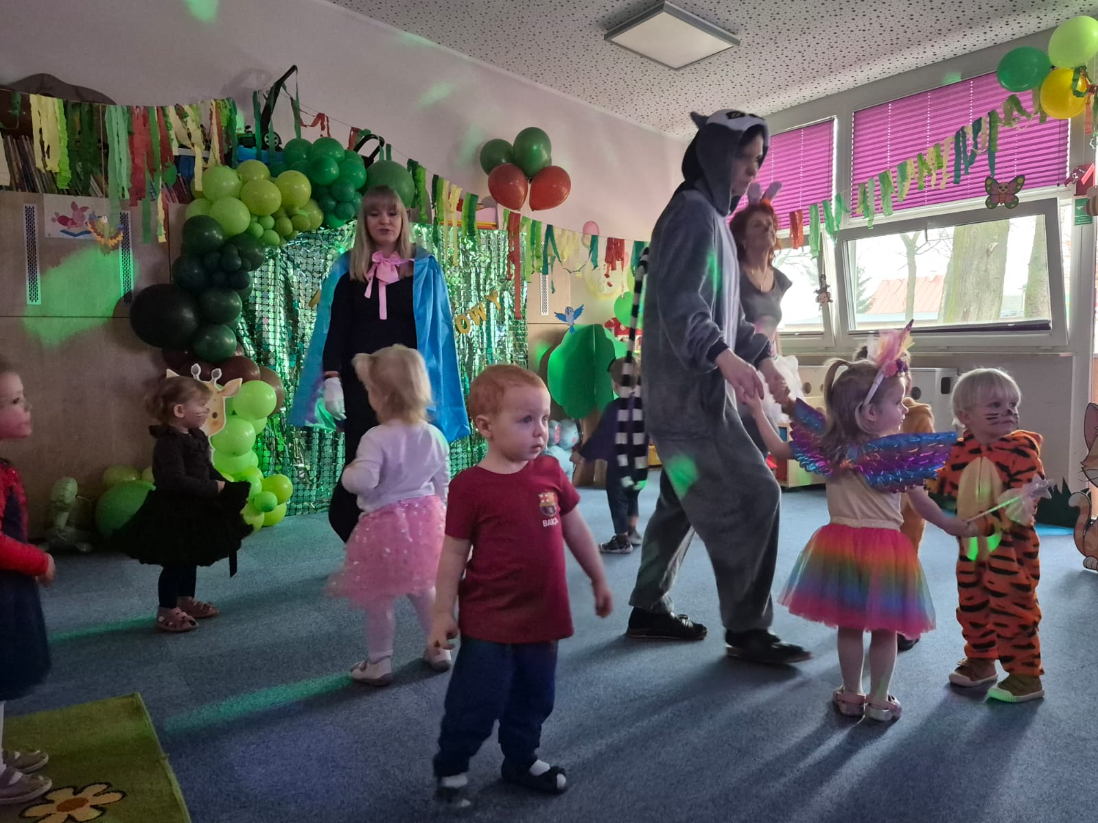 Każda grupa świętowała w swoim niepowtarzalnym klimacie. W jednej sali królowały wesołe Smerfy, w innej dzieci przeniosły się do fascynującego świata zoo, gdzie można było spotkać lwy, zebry i inne egzotyczne zwierzęta. Kolejna grupa odkrywała tajemnice podwodnego świata wśród rybek i morskich stworzeń, a u nas nie zabrakło także prawdziwej sali disco, gdzie mali tancerze pokazali swoje najlepsze ruchy!