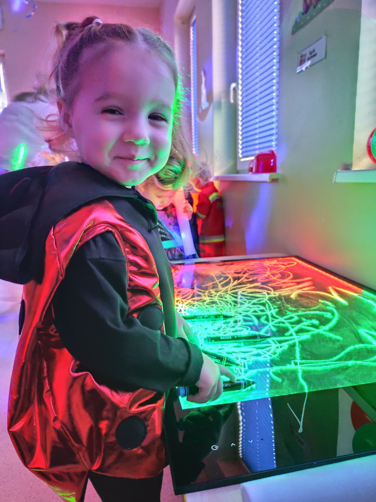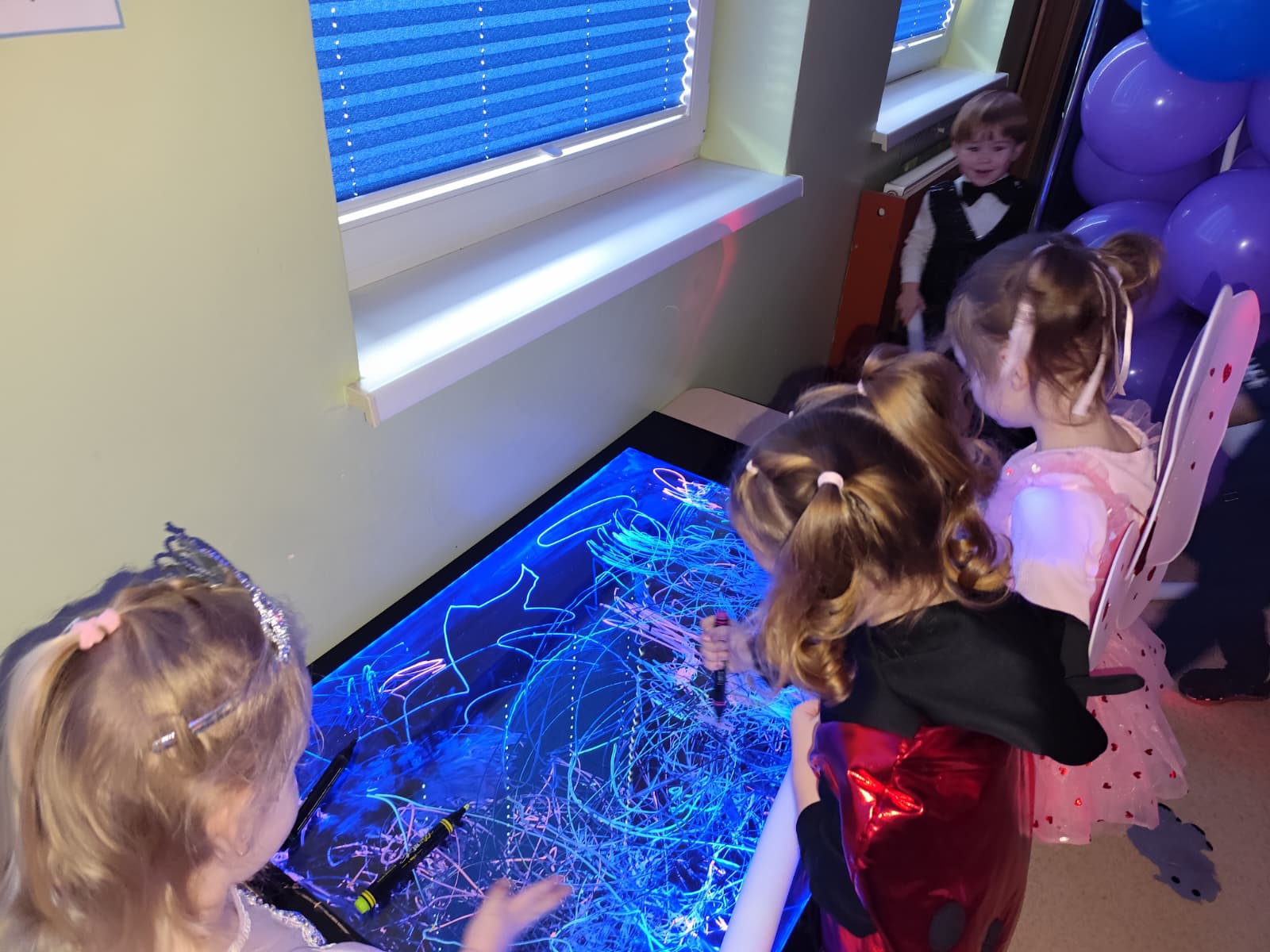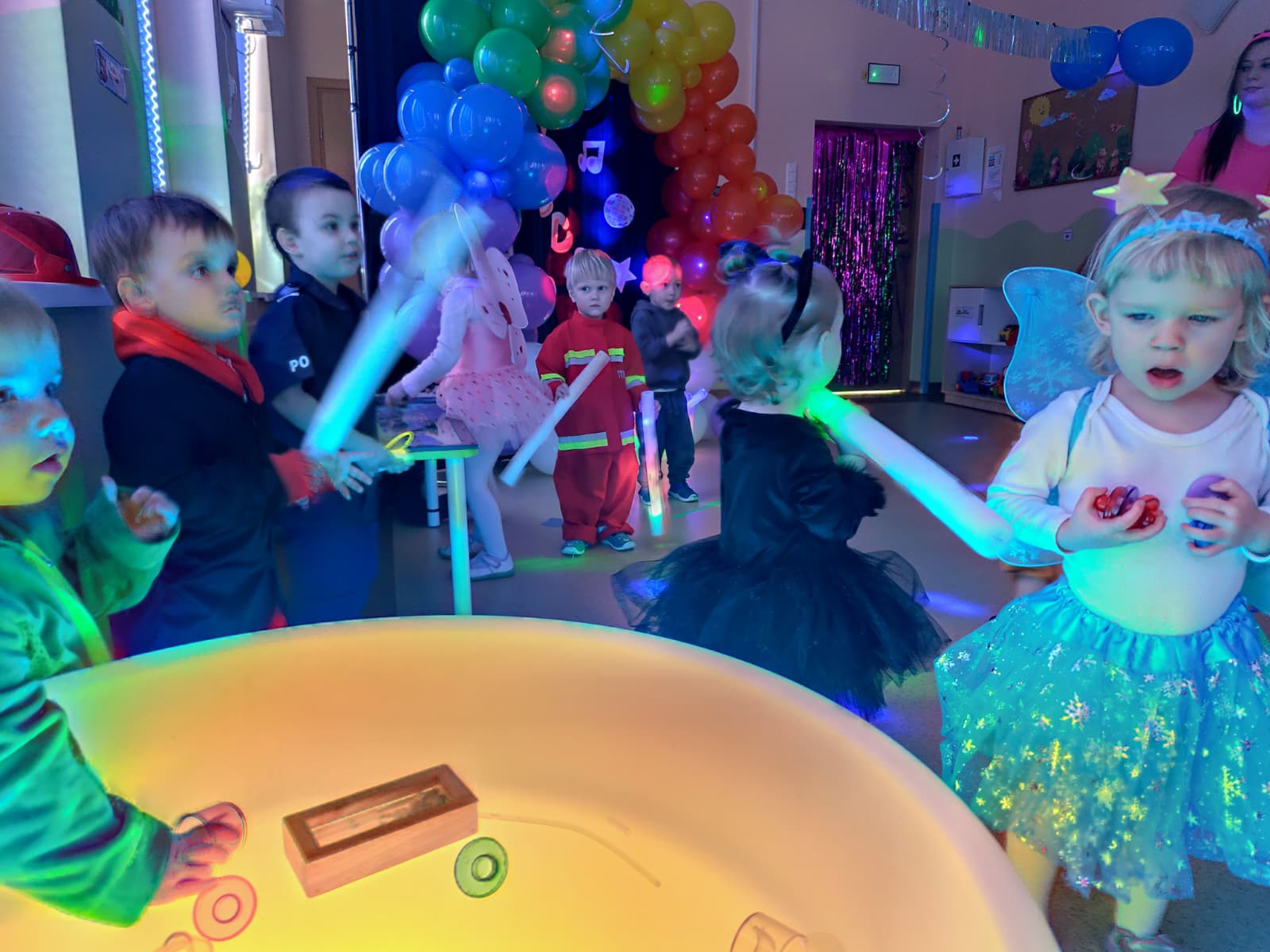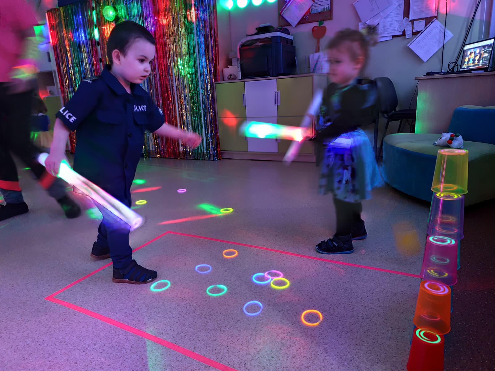 Każda grupa świętowała w swoim niepowtarzalnym klimacie. W jednej sali królowały wesołe Smerfy, w innej dzieci przeniosły się do fascynującego świata zoo, gdzie można było spotkać lwy, zebry i inne egzotyczne zwierzęta. Kolejna grupa odkrywała tajemnice podwodnego świata wśród rybek i morskich stworzeń, a u nas nie zabrakło także prawdziwej sali disco, gdzie mali tancerze pokazali swoje najlepsze ruchy!