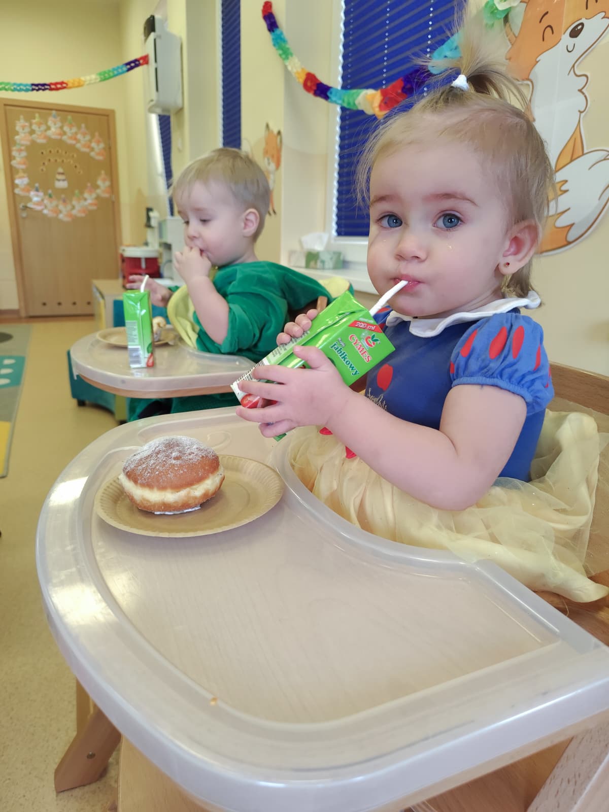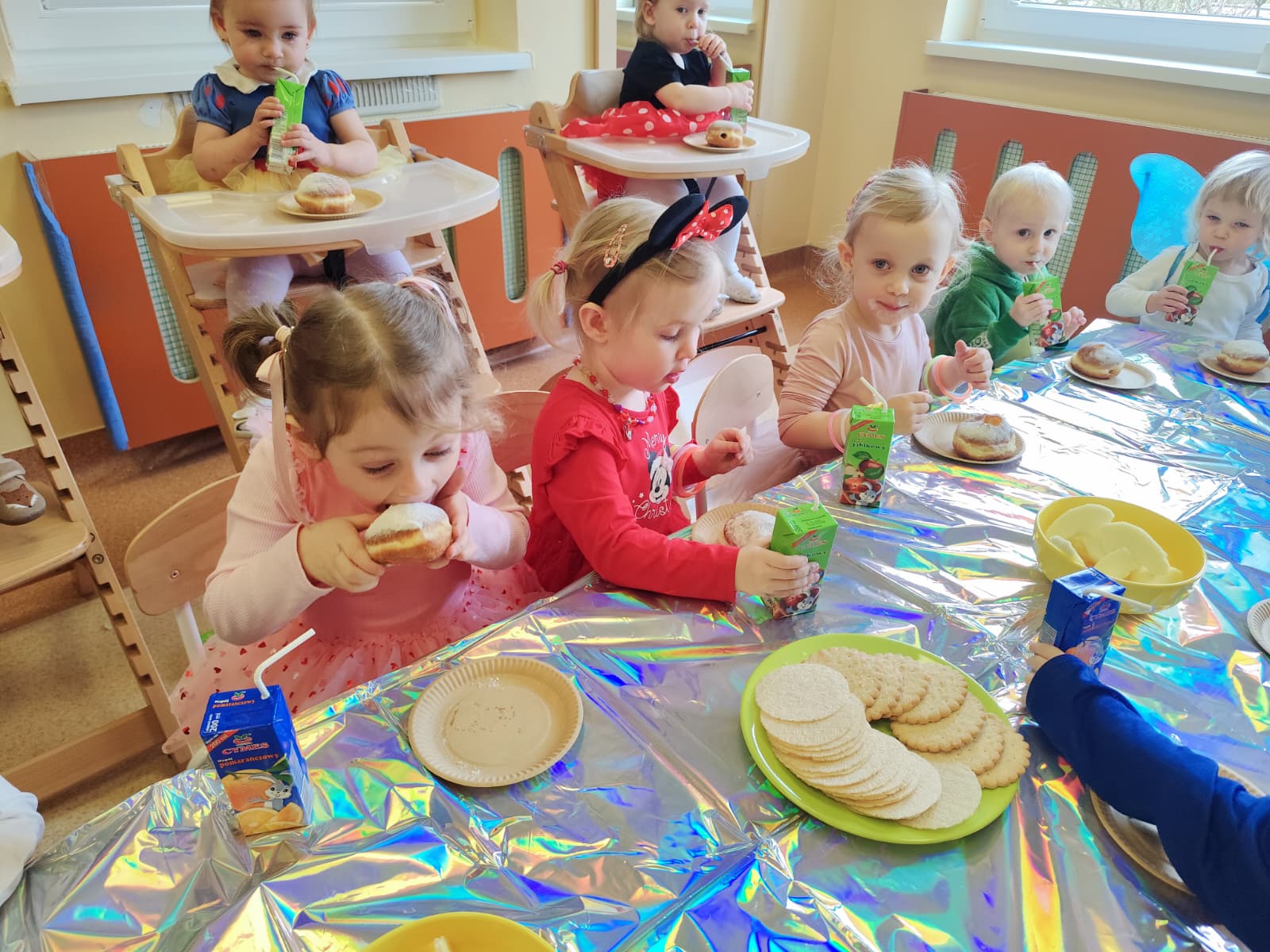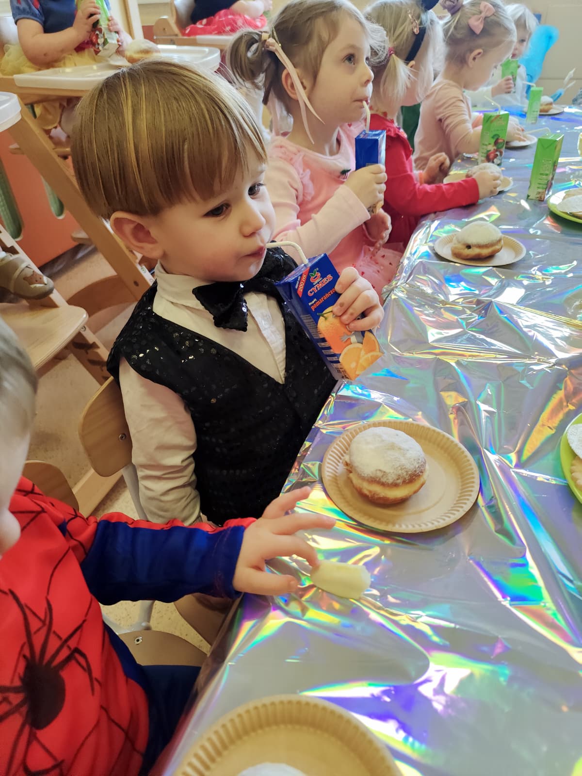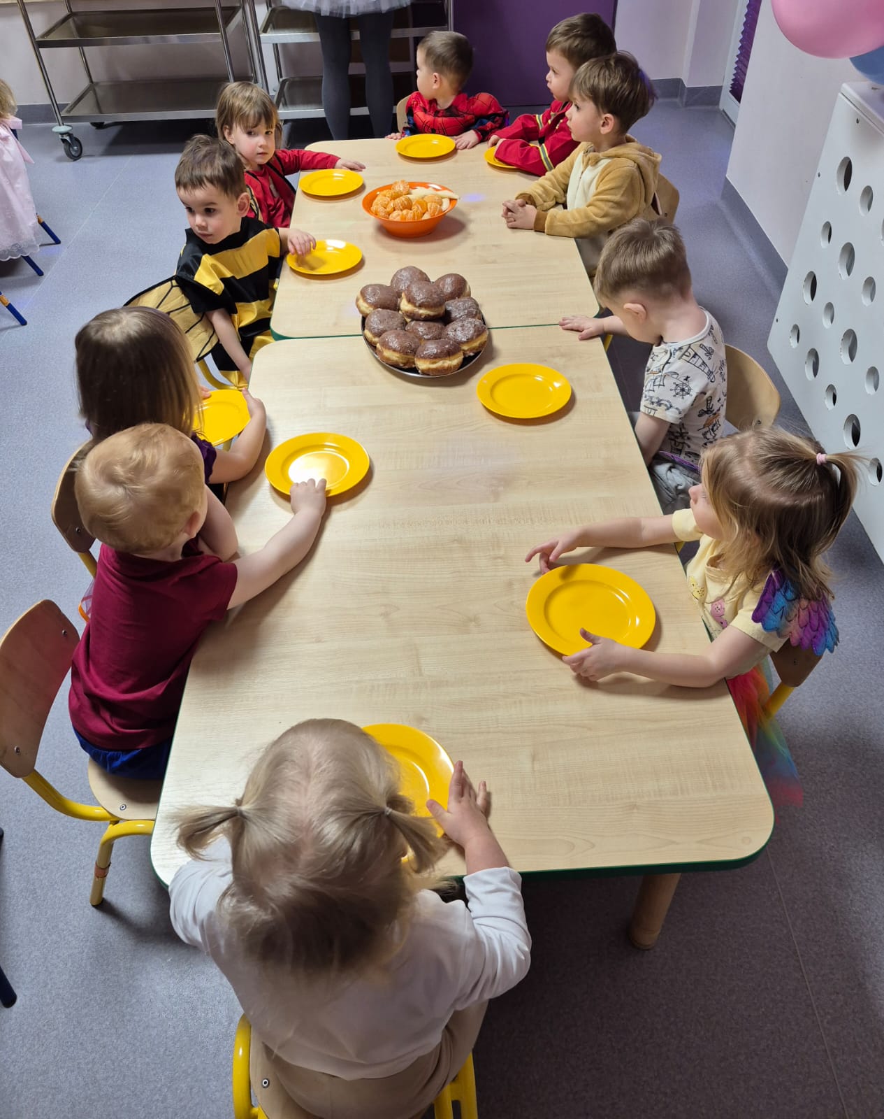 Dziś w naszym żłobku odbył się wyjątkowy i pełen radości dzień – połączyliśmy Bal Karnawałowy z obchodami Tłustego Czwartku! Było kolorowo, muzycznie i bardzo słodko