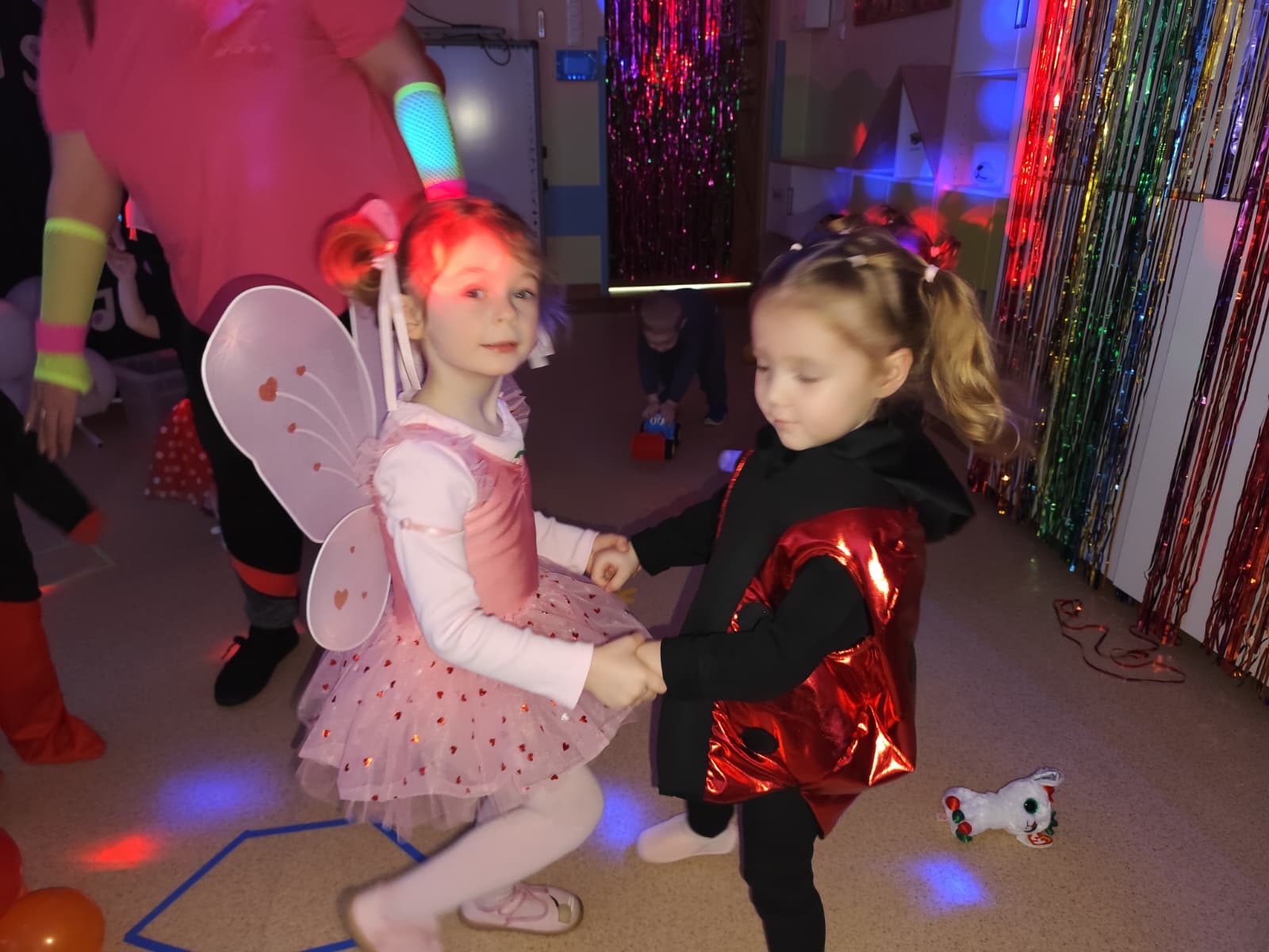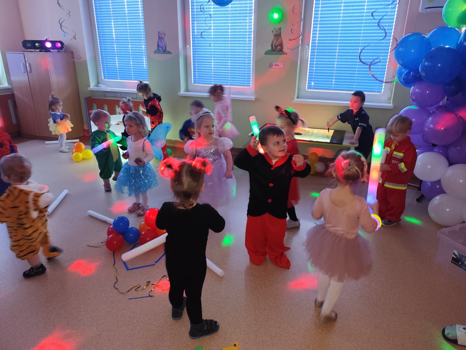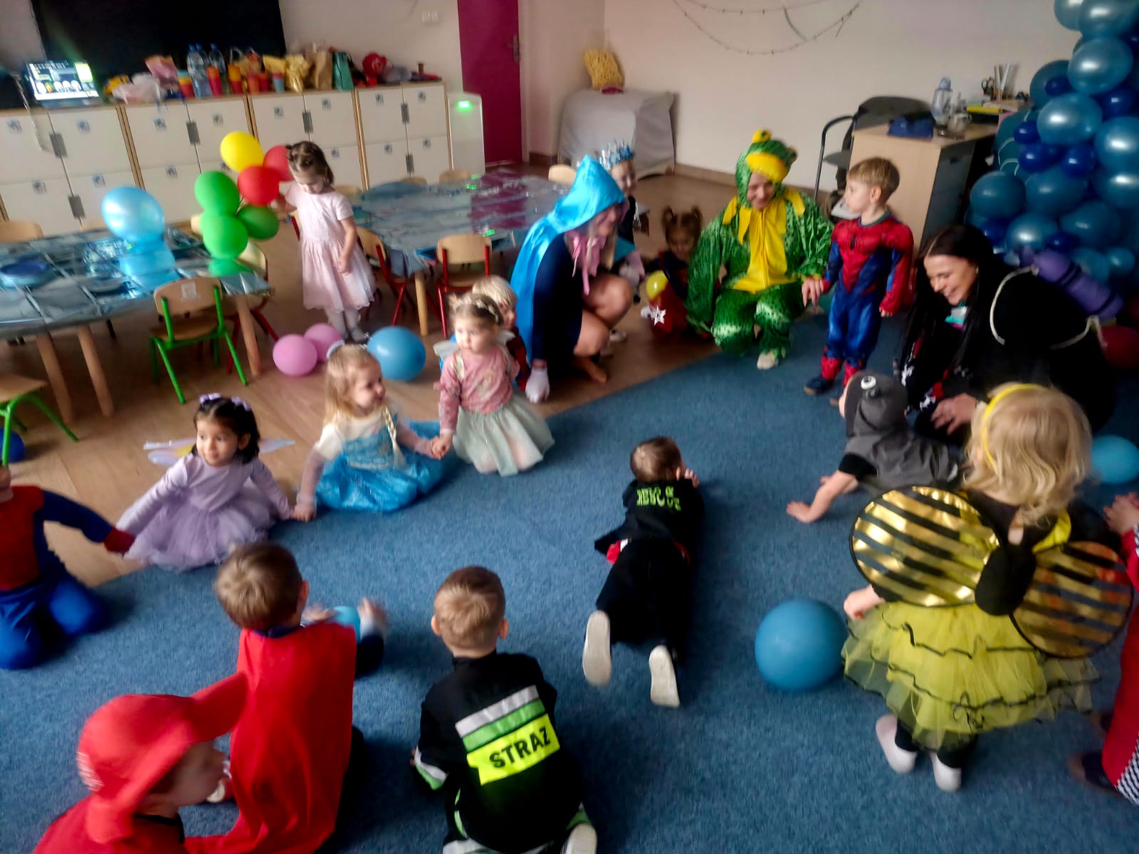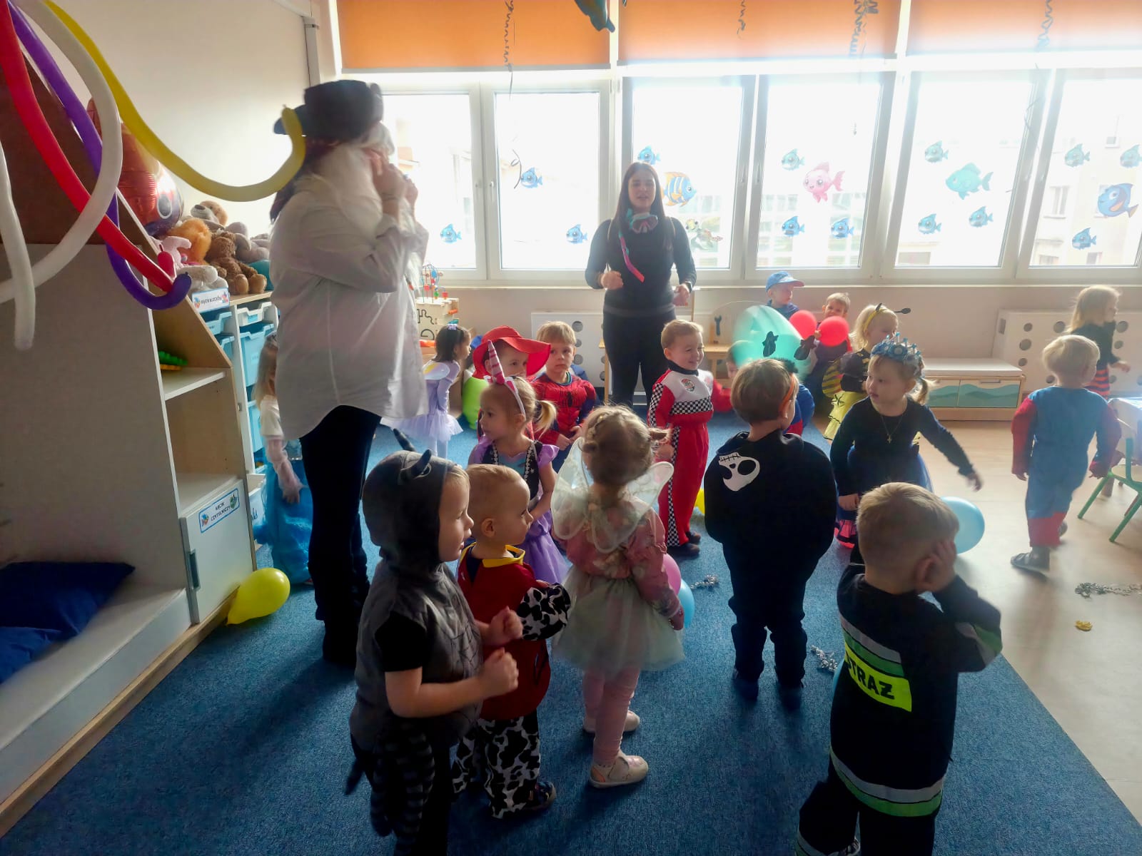 Dzieci wraz z ciociami tańczyły, brały udział w zabawach ruchowych, a uśmiechy nie schodziły z ich twarzy przez cały dzień. Wspólna zabawa była doskonałą okazją do integracji, rozwijania wyobraźni oraz spędzenia czasu w radosnej, karnawałowej atmosferze.