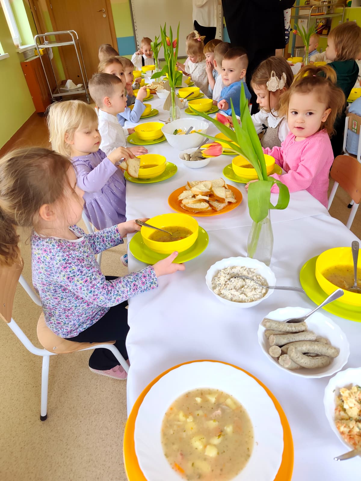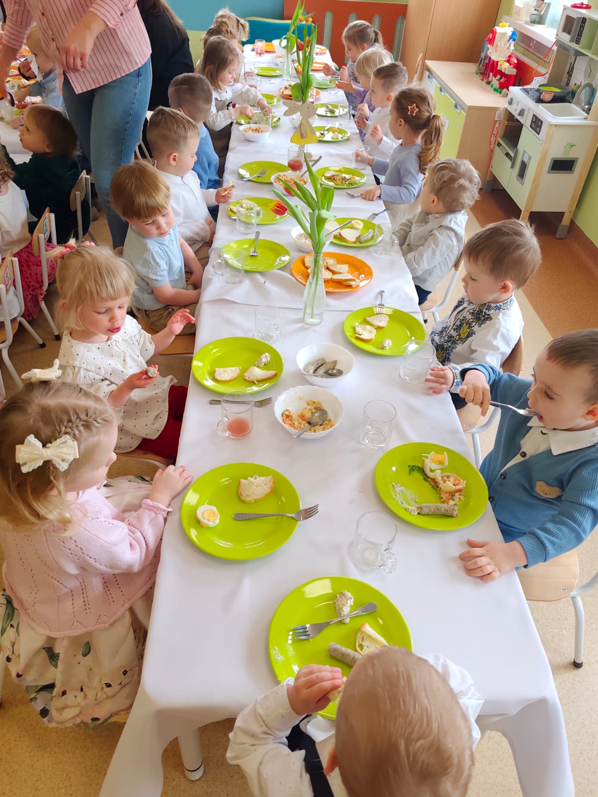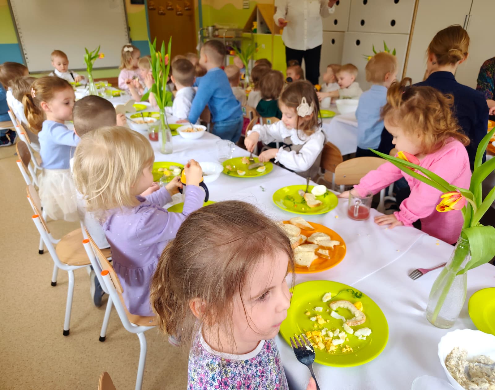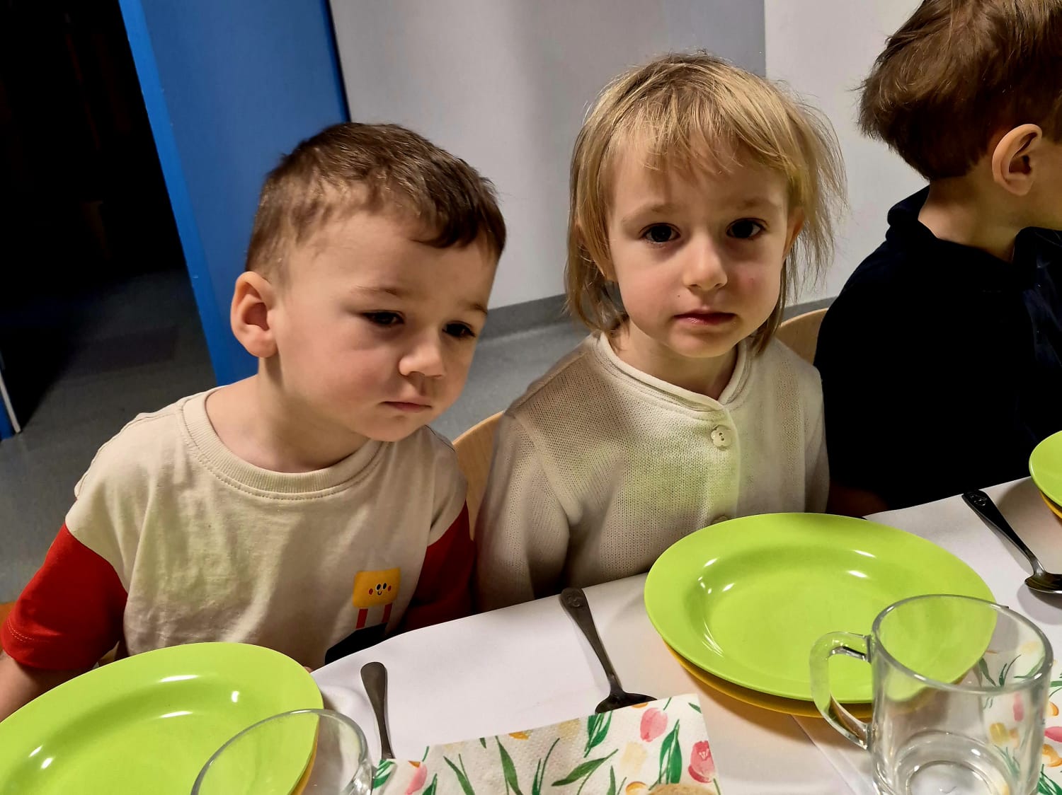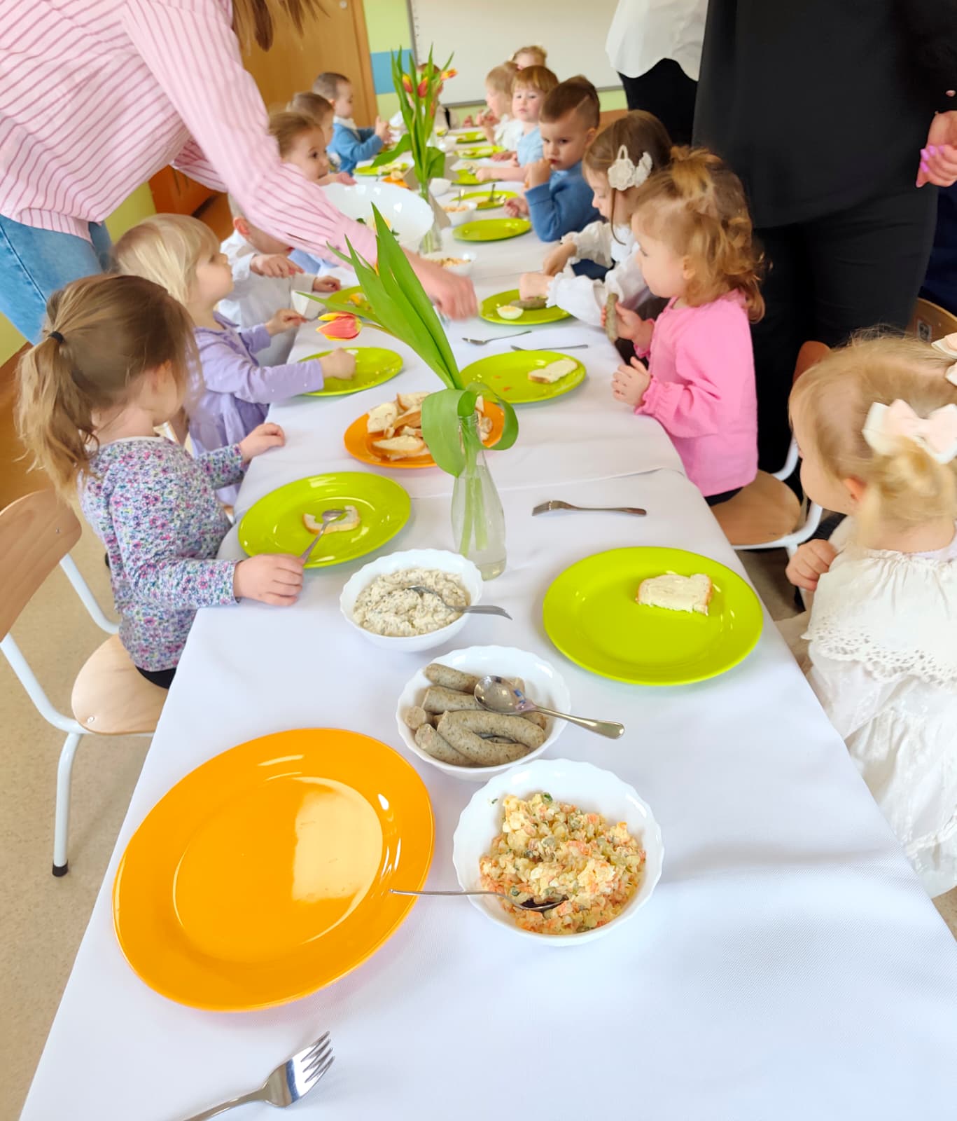 W dniach poprzedzających Święta Wielkanocne w naszym żłobku panowała wyjątkowa, radosna atmosfera, pełna tradycji i wspólnego świętowania. 31 marca odbyło się uroczyste śniadanko oraz obiad wielkanocny. Na stołach pojawiły się tradycyjne potrawy – od aromatycznego żurku po słodką, wielkanocną babkę. Dzieci miały okazję spróbować świątecznych smaków, a także wspólnie spędzić czas przy pięknie udekorowanych stołach, ucząc się przy tym wielkanocnych zwyczajów.