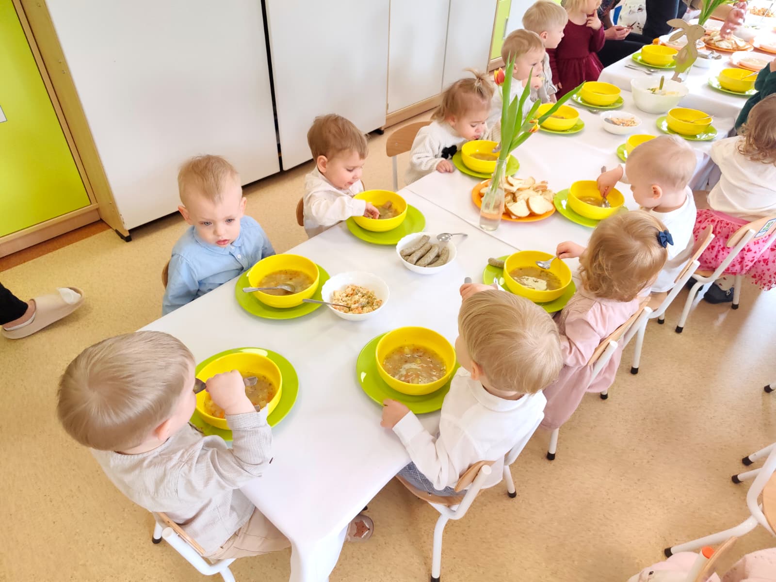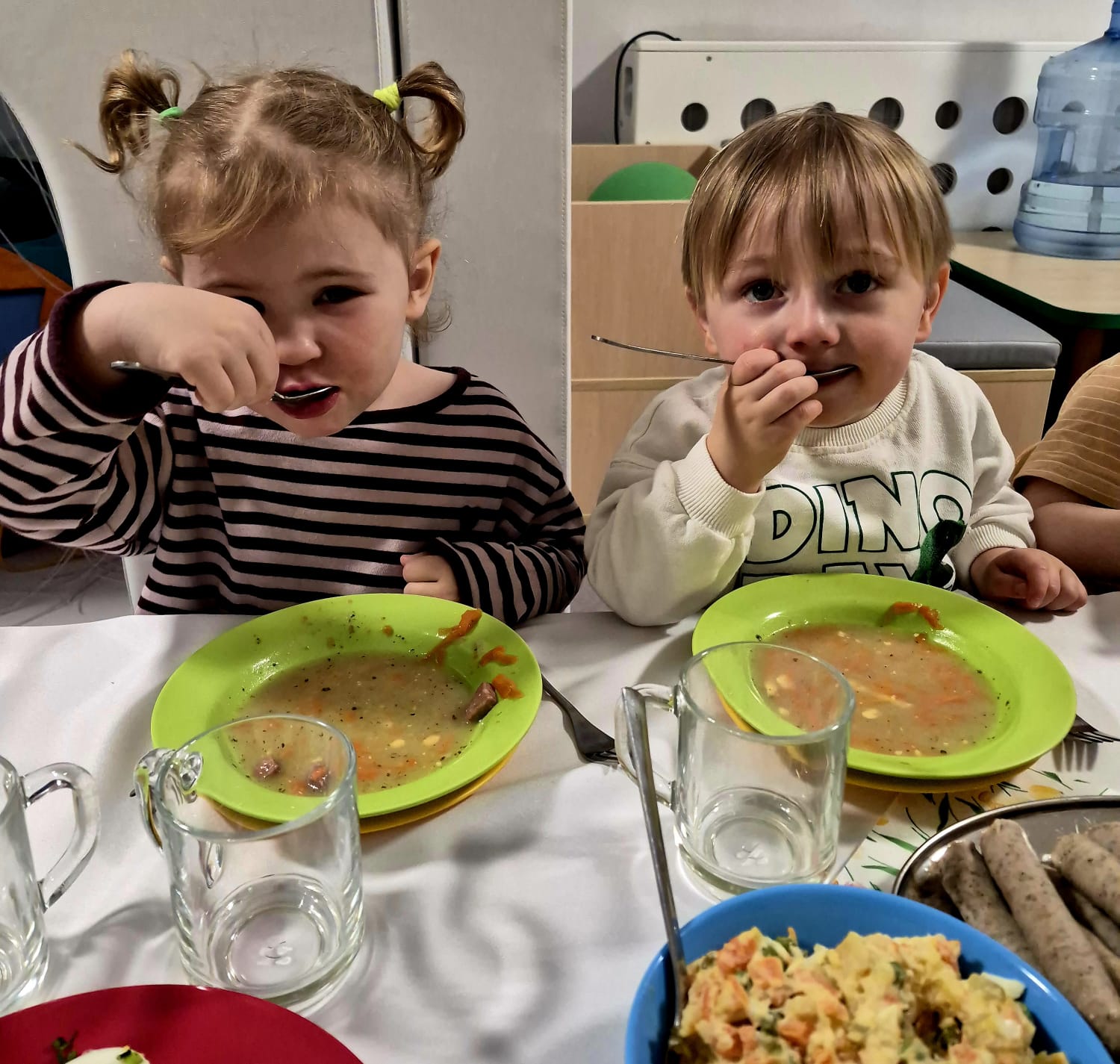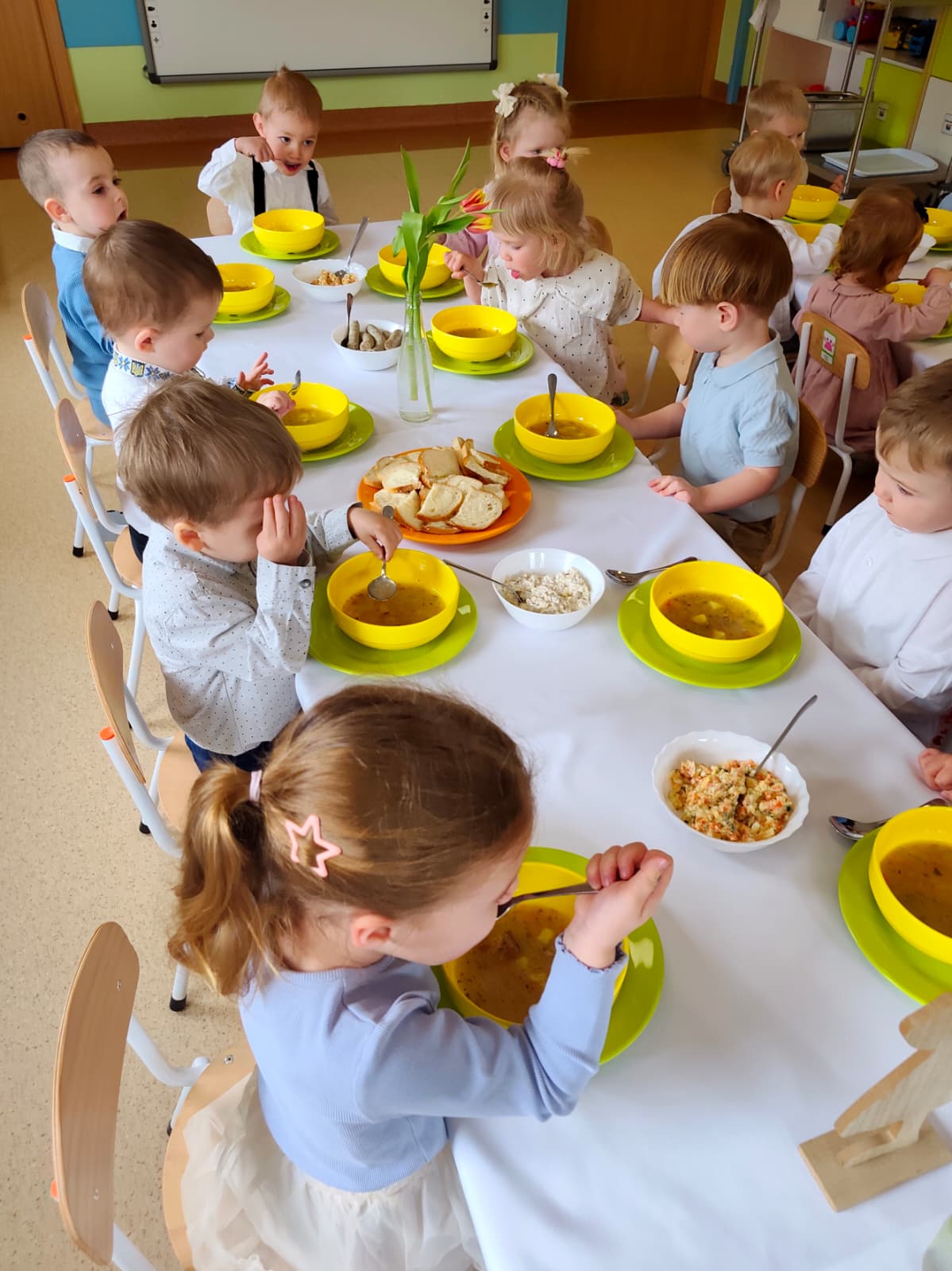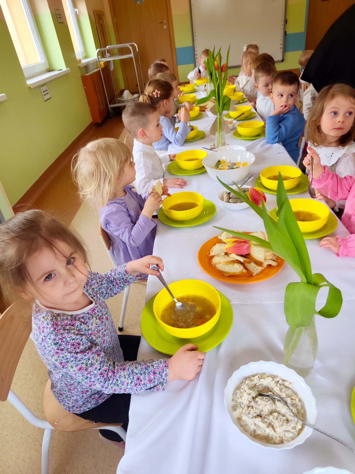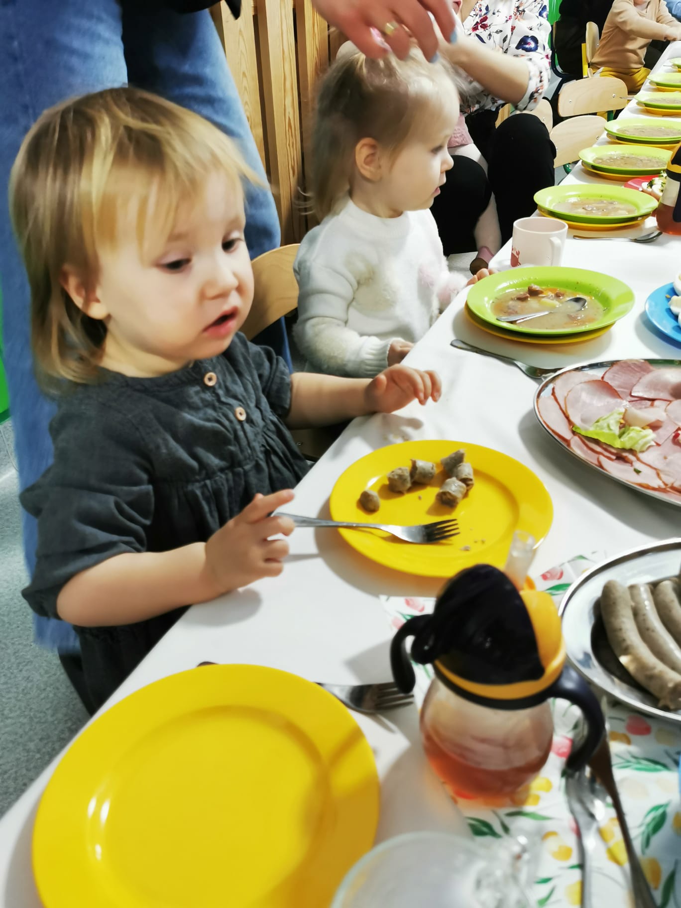 W dniach poprzedzających Święta Wielkanocne w naszym żłobku panowała wyjątkowa, radosna atmosfera, pełna tradycji i wspólnego świętowania. 31 marca odbyło się uroczyste śniadanko oraz obiad wielkanocny. Na stołach pojawiły się tradycyjne potrawy – od aromatycznego żurku po słodką, wielkanocną babkę. Dzieci miały okazję spróbować świątecznych smaków, a także wspólnie spędzić czas przy pięknie udekorowanych stołach, ucząc się przy tym wielkanocnych zwyczajów.