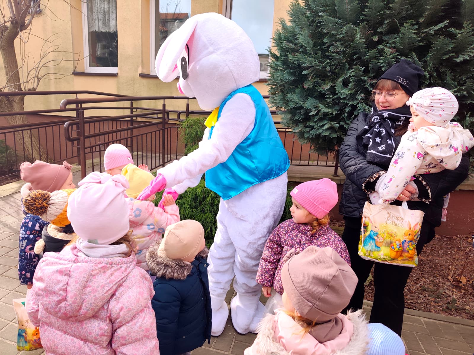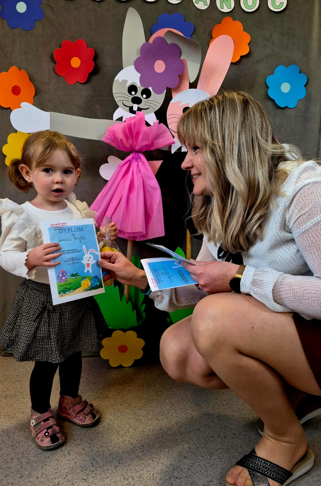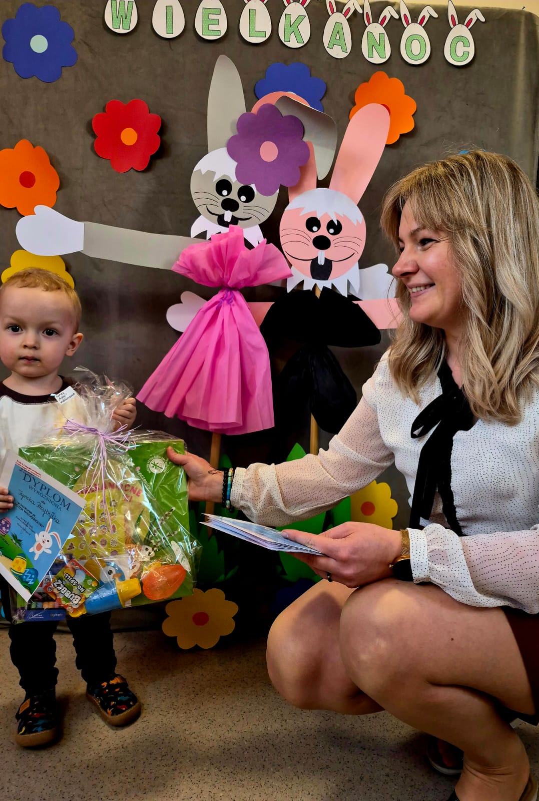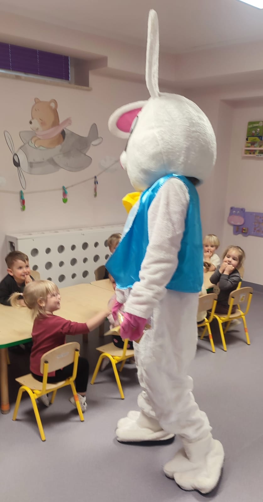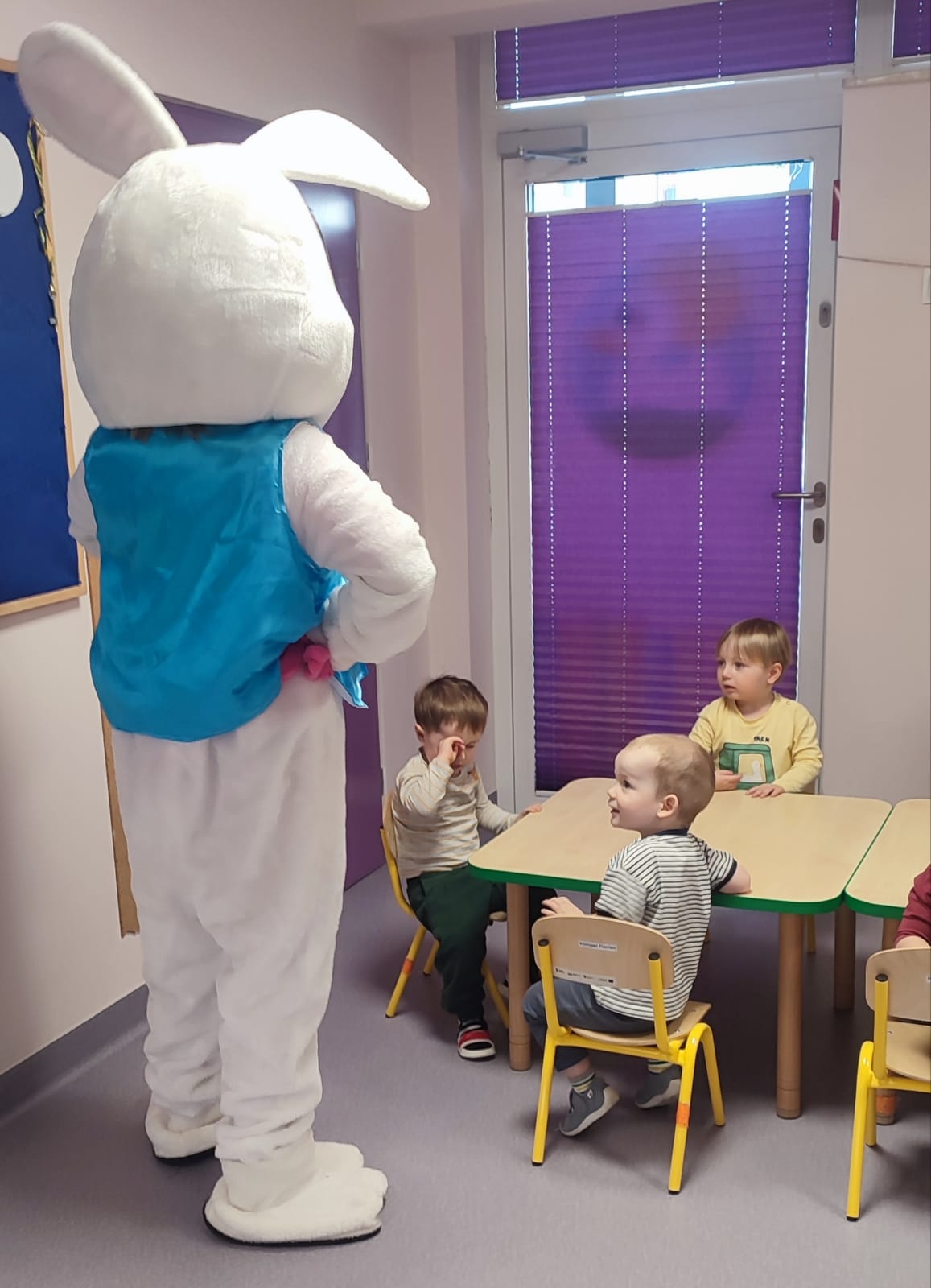 Natomiast 1 kwietnia spotkała nas niezwykła niespodzianka – do żłobka zawitał Zajączek! Przyniósł dzieciom cudowne prezenty, które wywołały wiele radości i uśmiechów na ich twarzach. Był to dzień pełen emocji i niezapomnianych chwil. Na zakończenie tego wyjątkowego dnia Pani Dyrektor wręczyła dzieciom dyplomy oraz nagrody za udział w konkursie „Zajączek Wielkanocny”