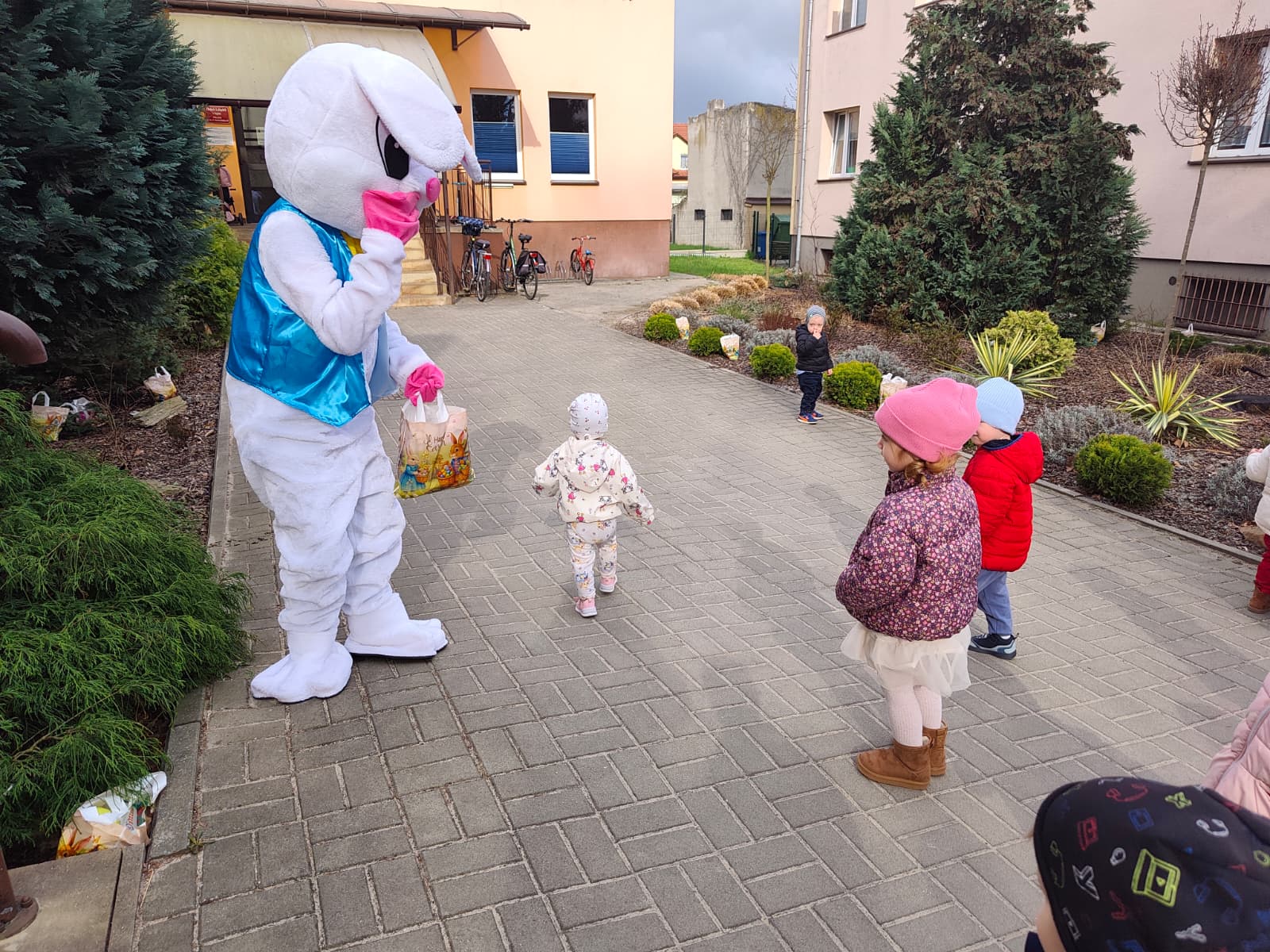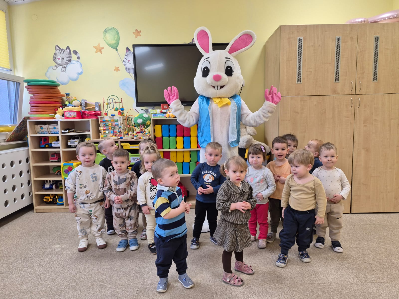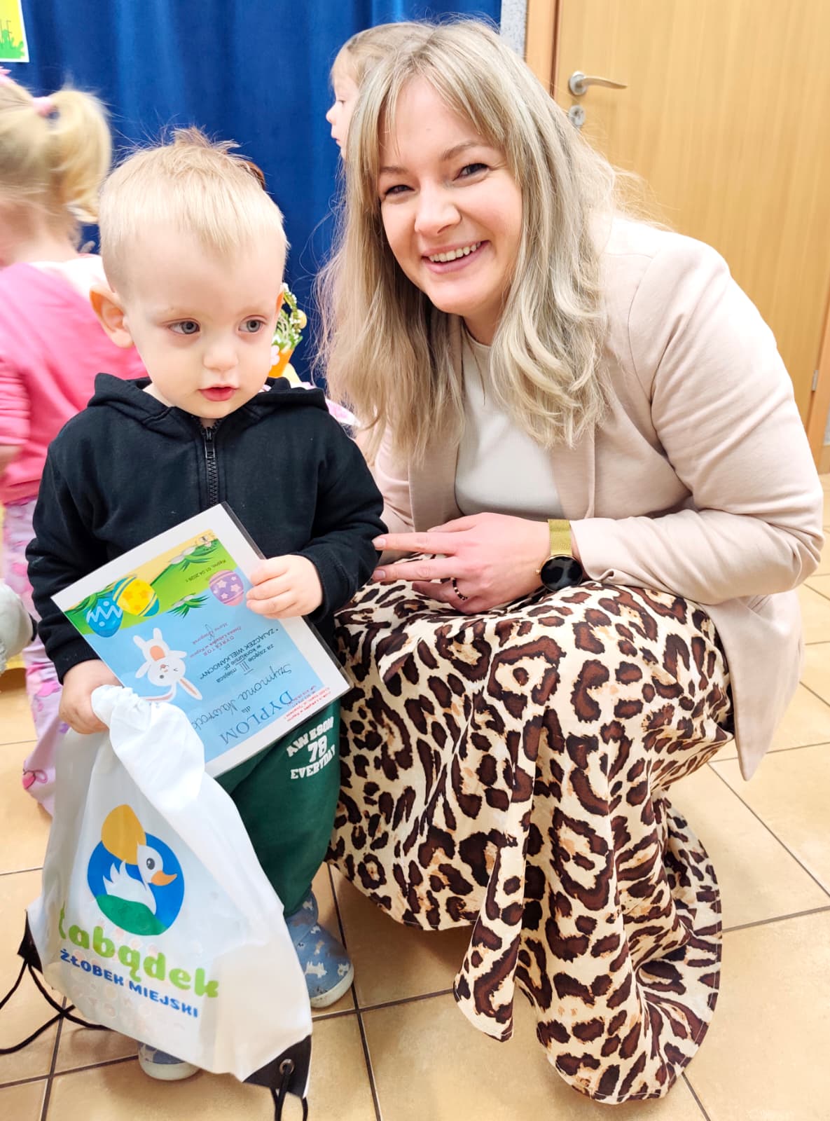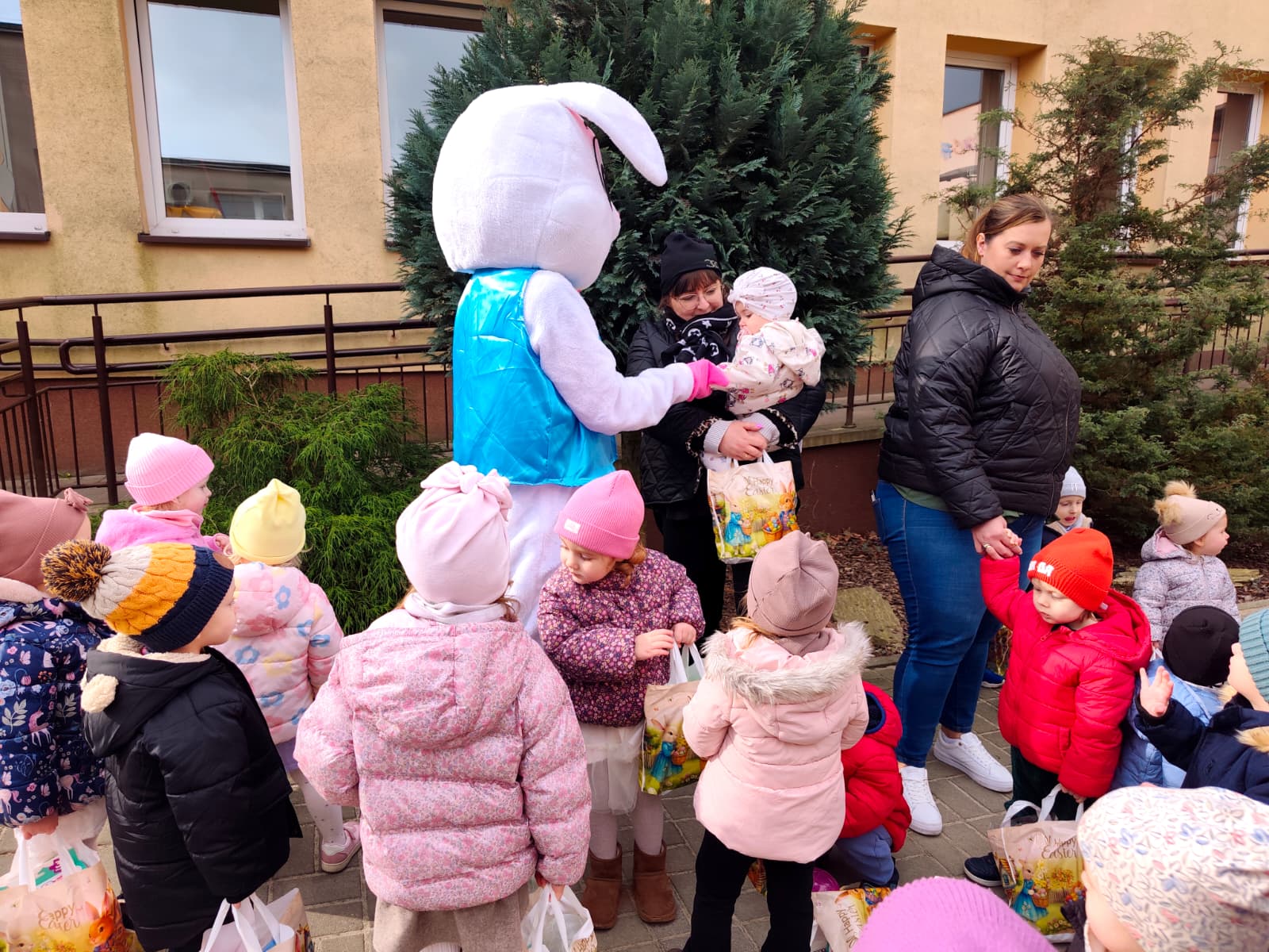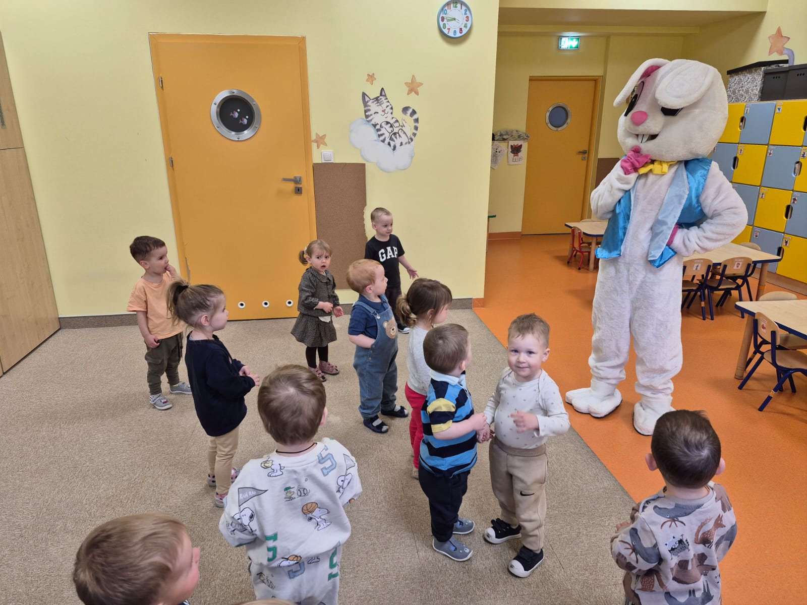Natomiast 1 kwietnia spotkała nas niezwykła niespodzianka – do żłobka zawitał Zajączek! Przyniósł dzieciom cudowne prezenty, które wywołały wiele radości i uśmiechów na ich twarzach. Był to dzień pełen emocji i niezapomnianych chwil. Na zakończenie tego wyjątkowego dnia Pani Dyrektor wręczyła dzieciom dyplomy oraz nagrody za udział w konkursie „Zajączek Wielkanocny”