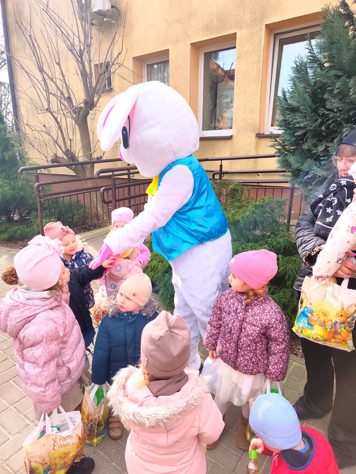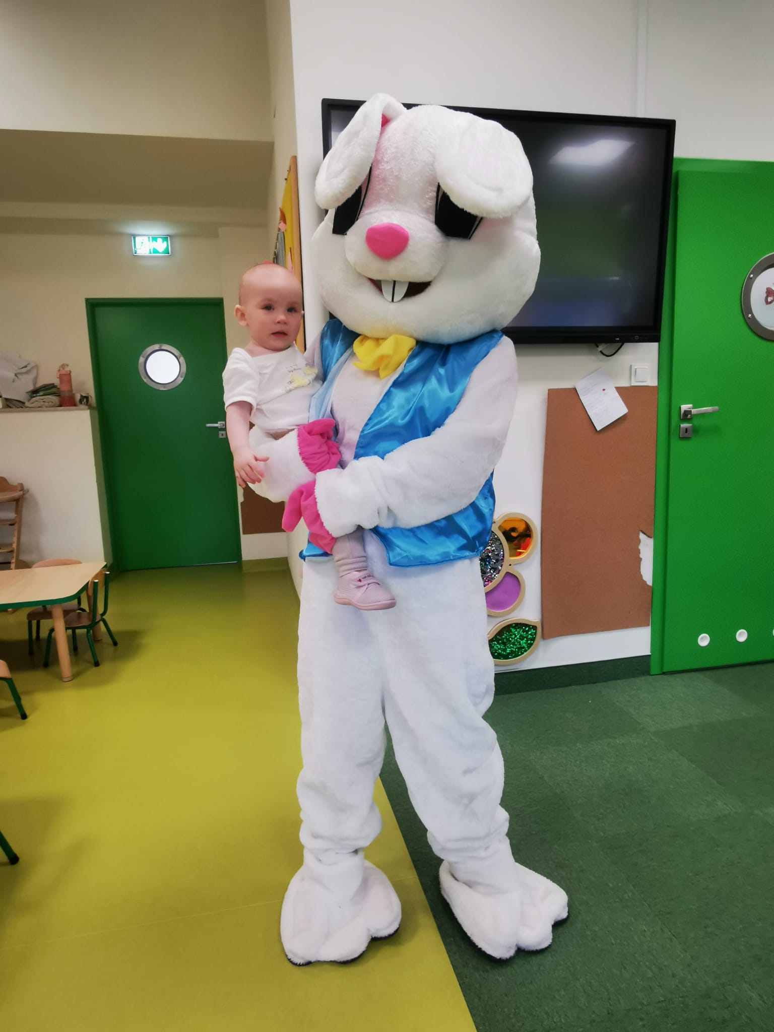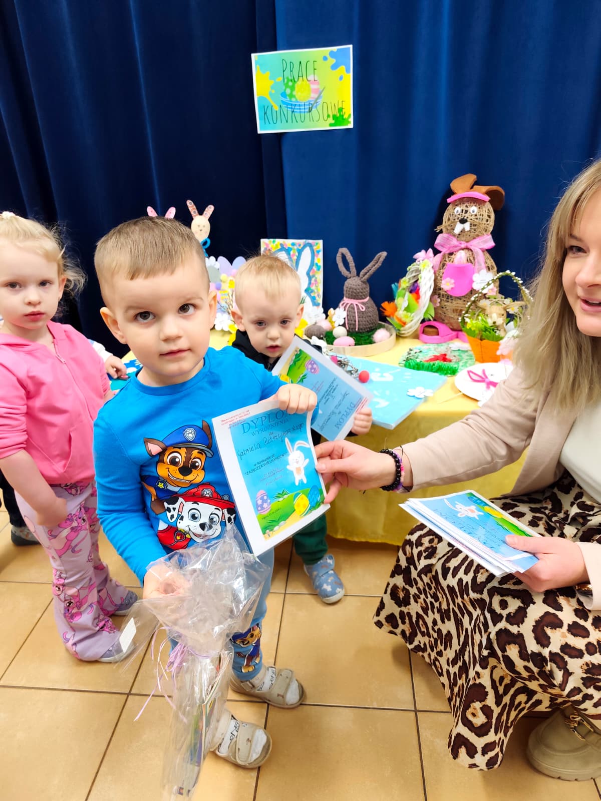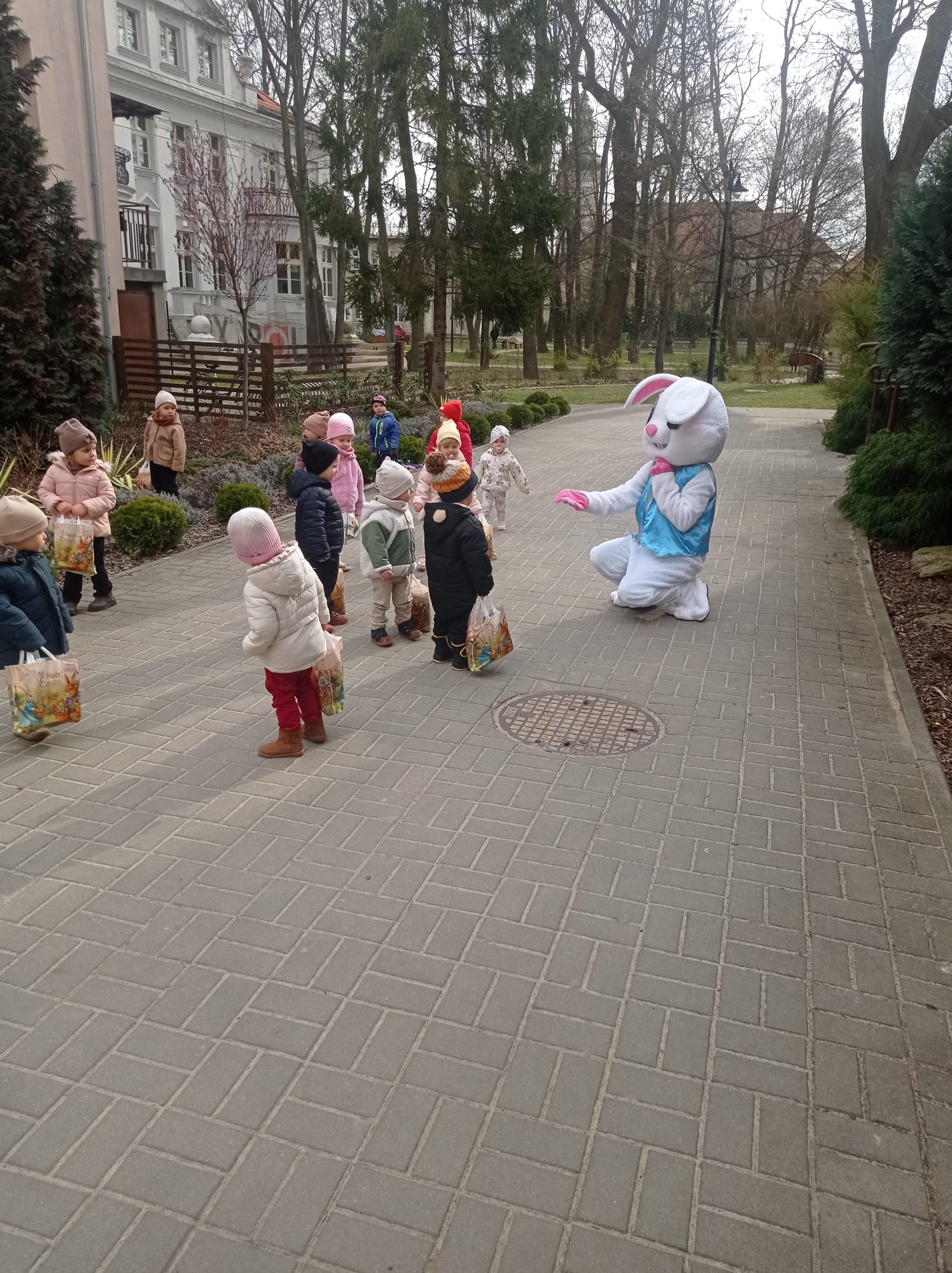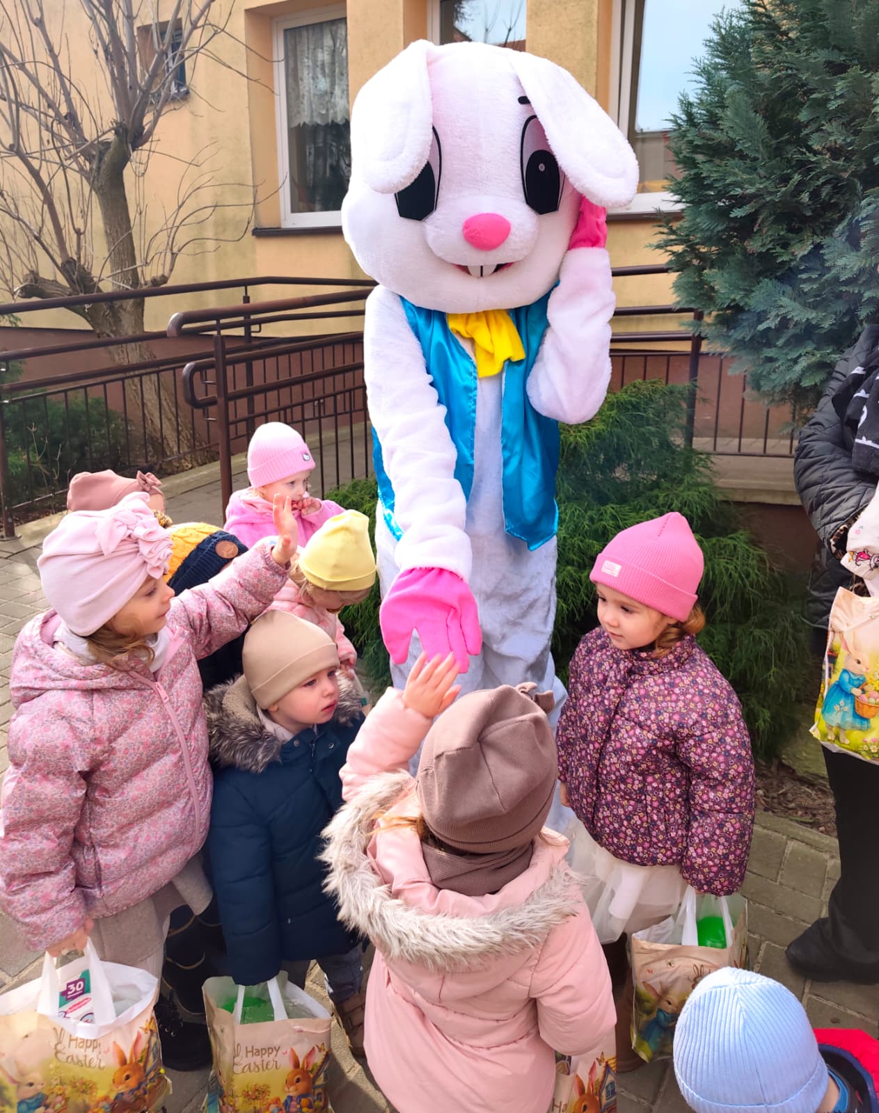 Natomiast 1 kwietnia spotkała nas niezwykła niespodzianka – do żłobka zawitał Zajączek! Przyniósł dzieciom cudowne prezenty, które wywołały wiele radości i uśmiechów na ich twarzach. Był to dzień pełen emocji i niezapomnianych chwil. Na zakończenie tego wyjątkowego dnia Pani Dyrektor wręczyła dzieciom dyplomy oraz nagrody za udział w konkursie „Zajączek Wielkanocny”
