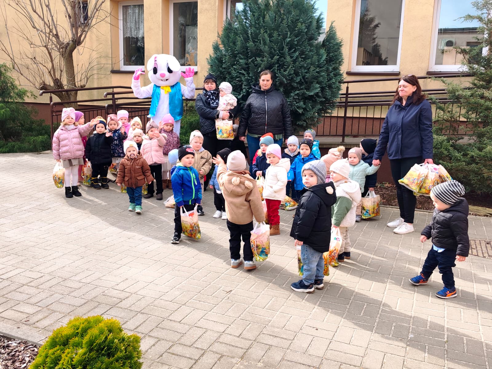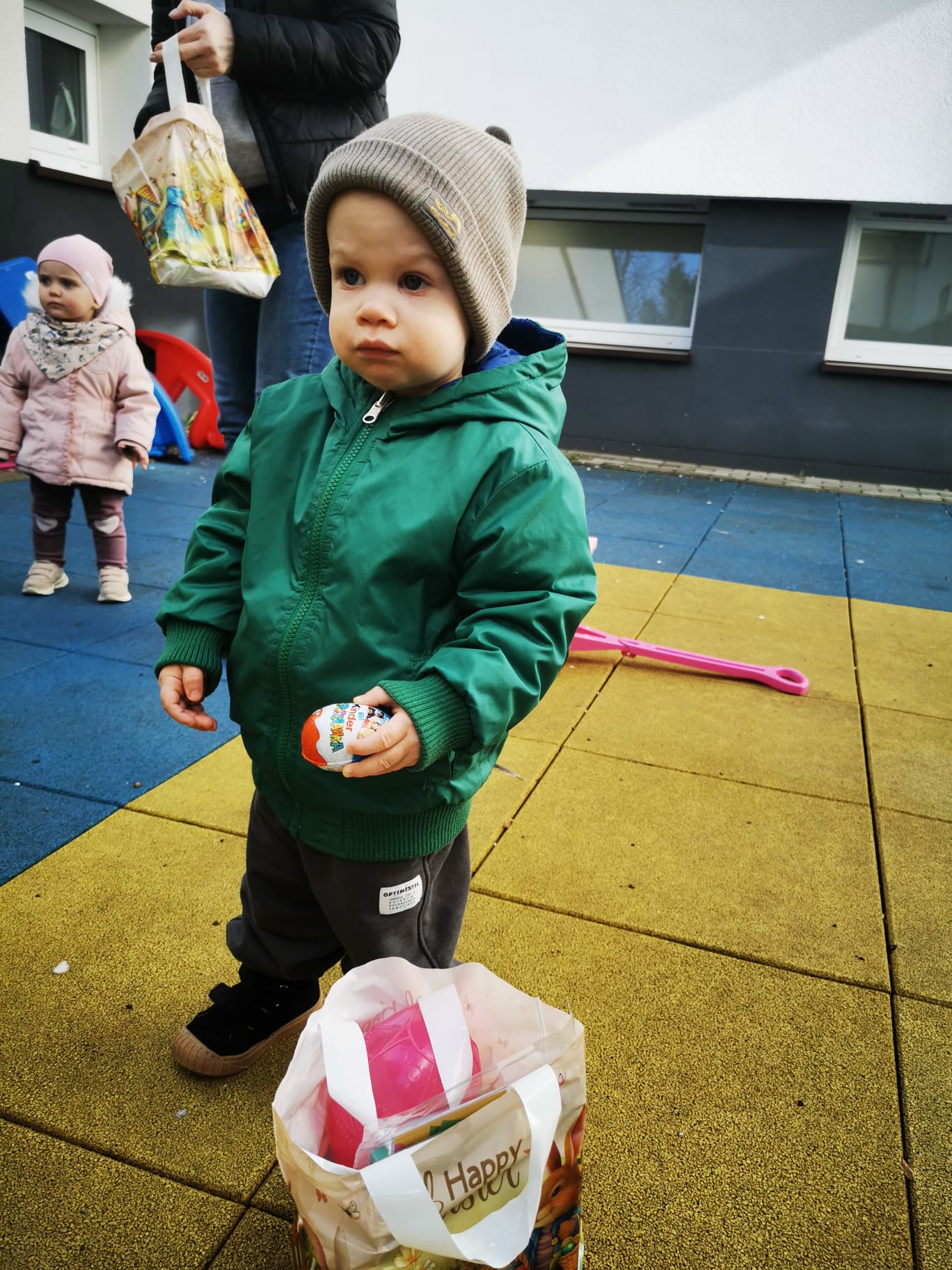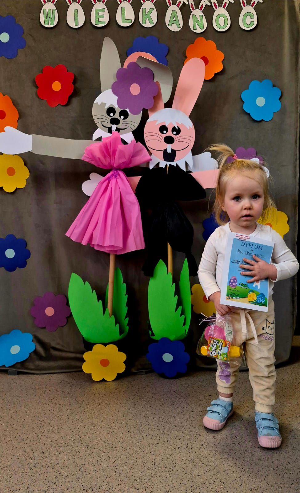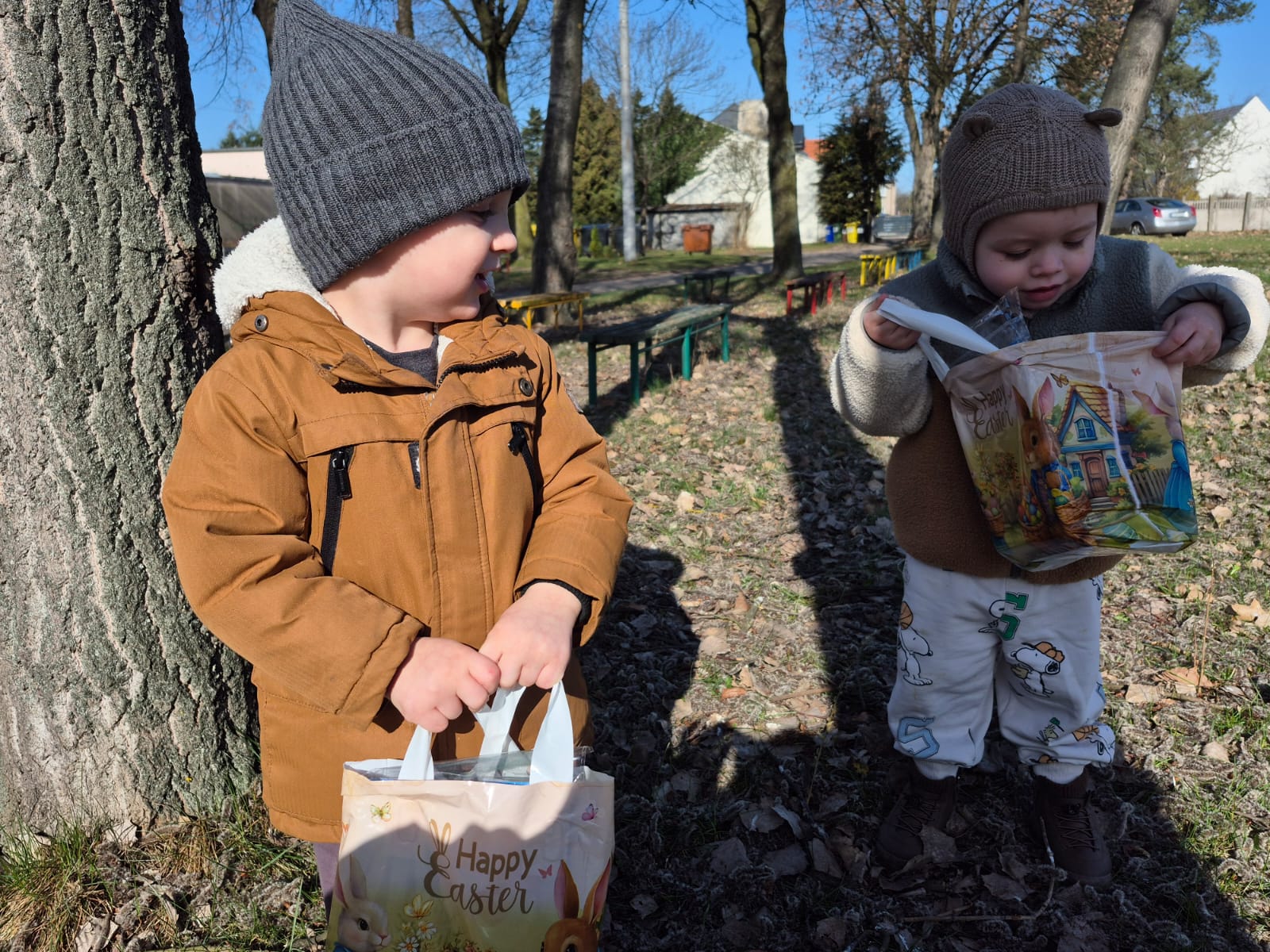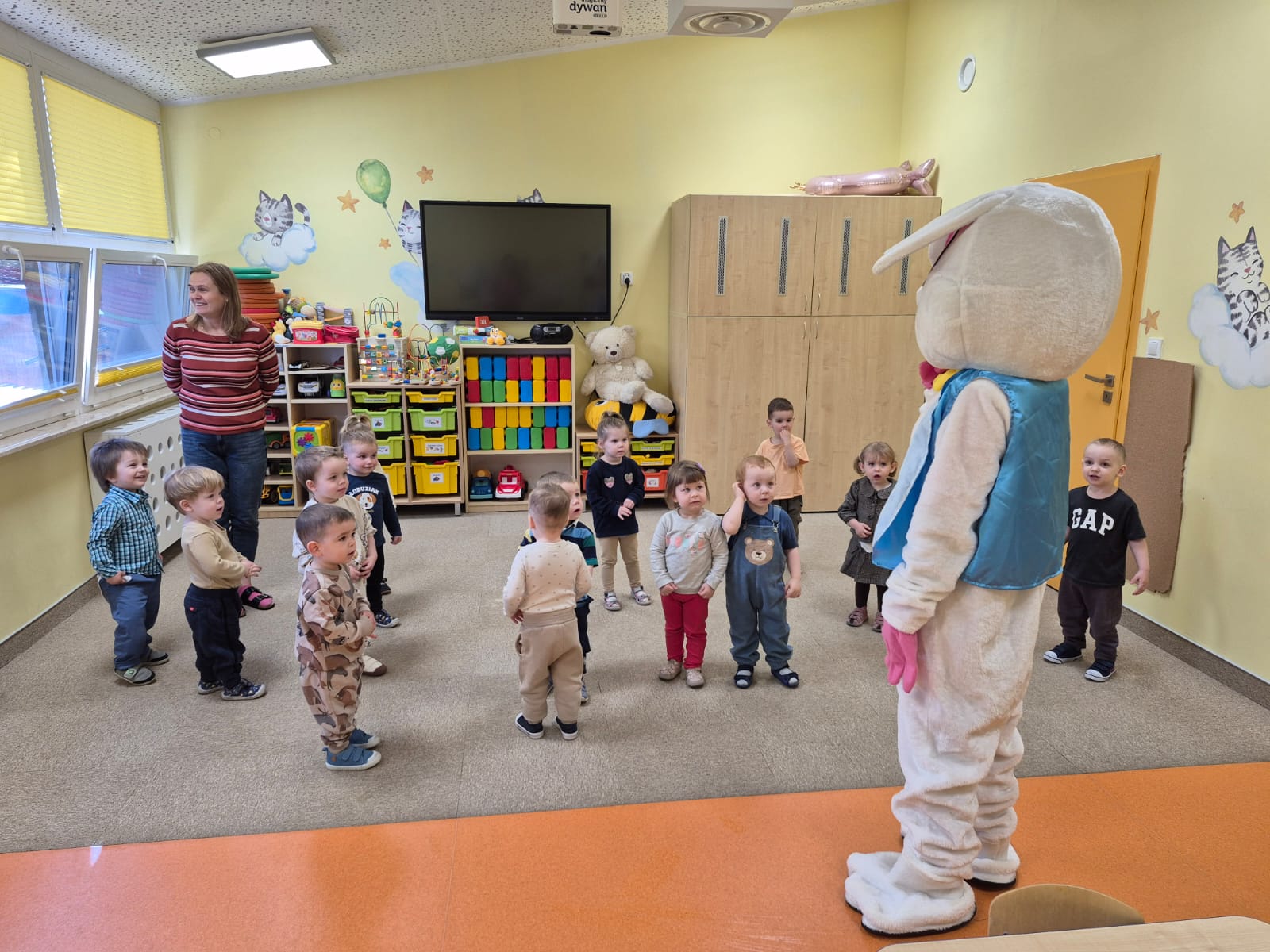 Natomiast 1 kwietnia spotkała nas niezwykła niespodzianka – do żłobka zawitał Zajączek! Przyniósł dzieciom cudowne prezenty, które wywołały wiele radości i uśmiechów na ich twarzach. Był to dzień pełen emocji i niezapomnianych chwil. Na zakończenie tego wyjątkowego dnia Pani Dyrektor wręczyła dzieciom dyplomy oraz nagrody za udział w konkursie „Zajączek Wielkanocny”
