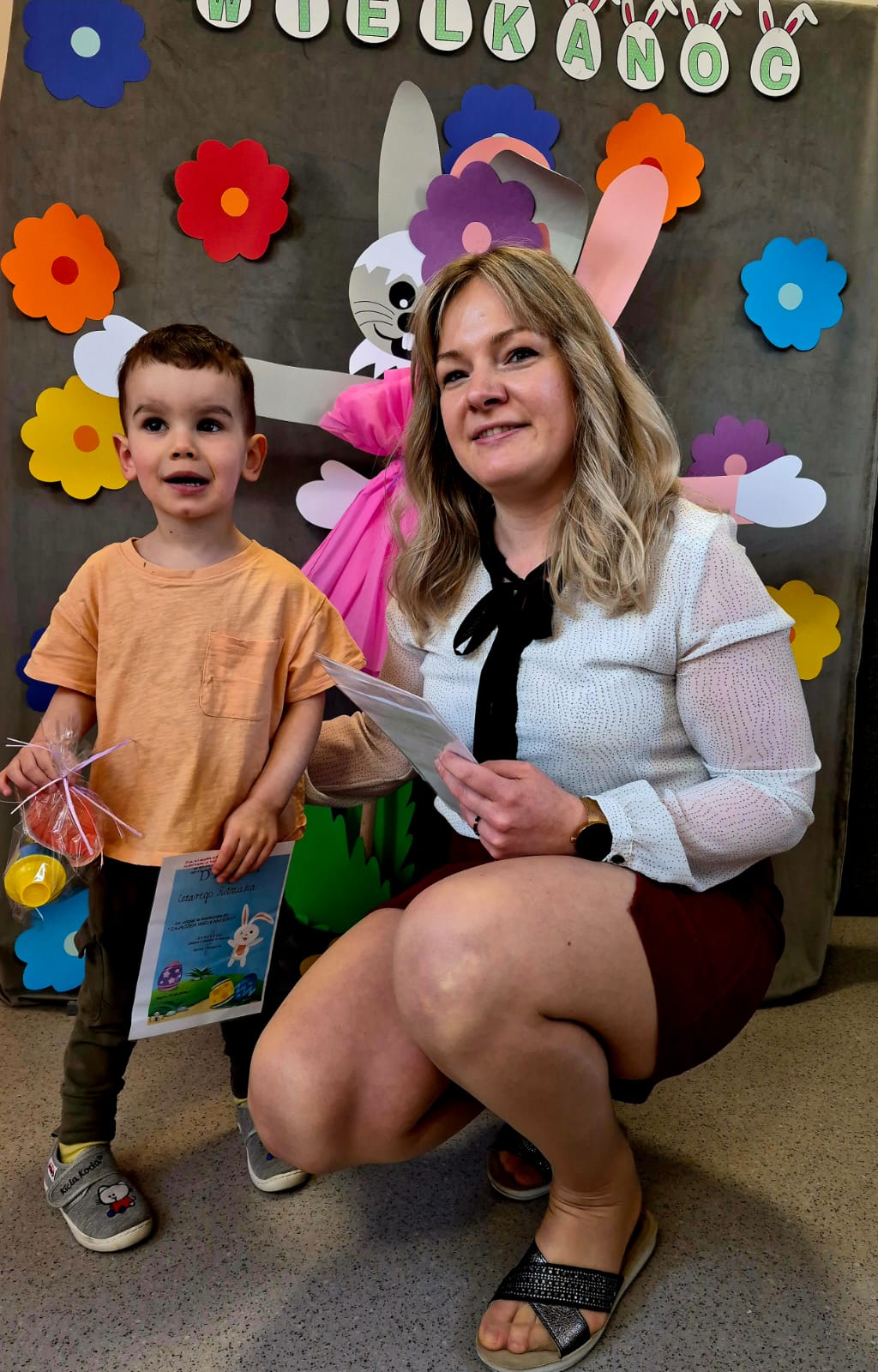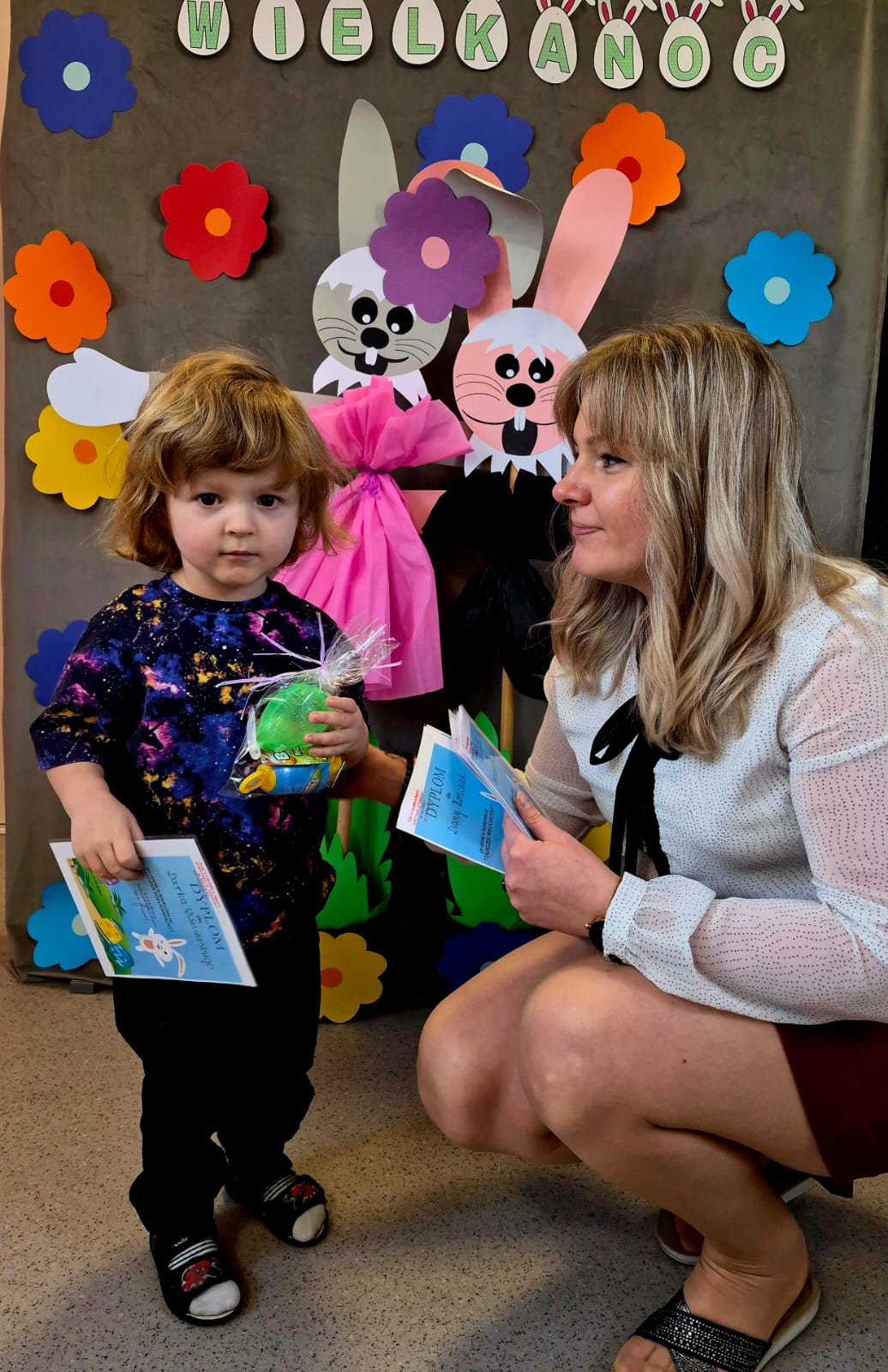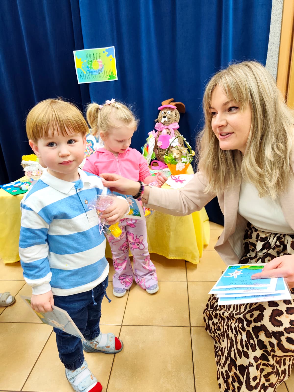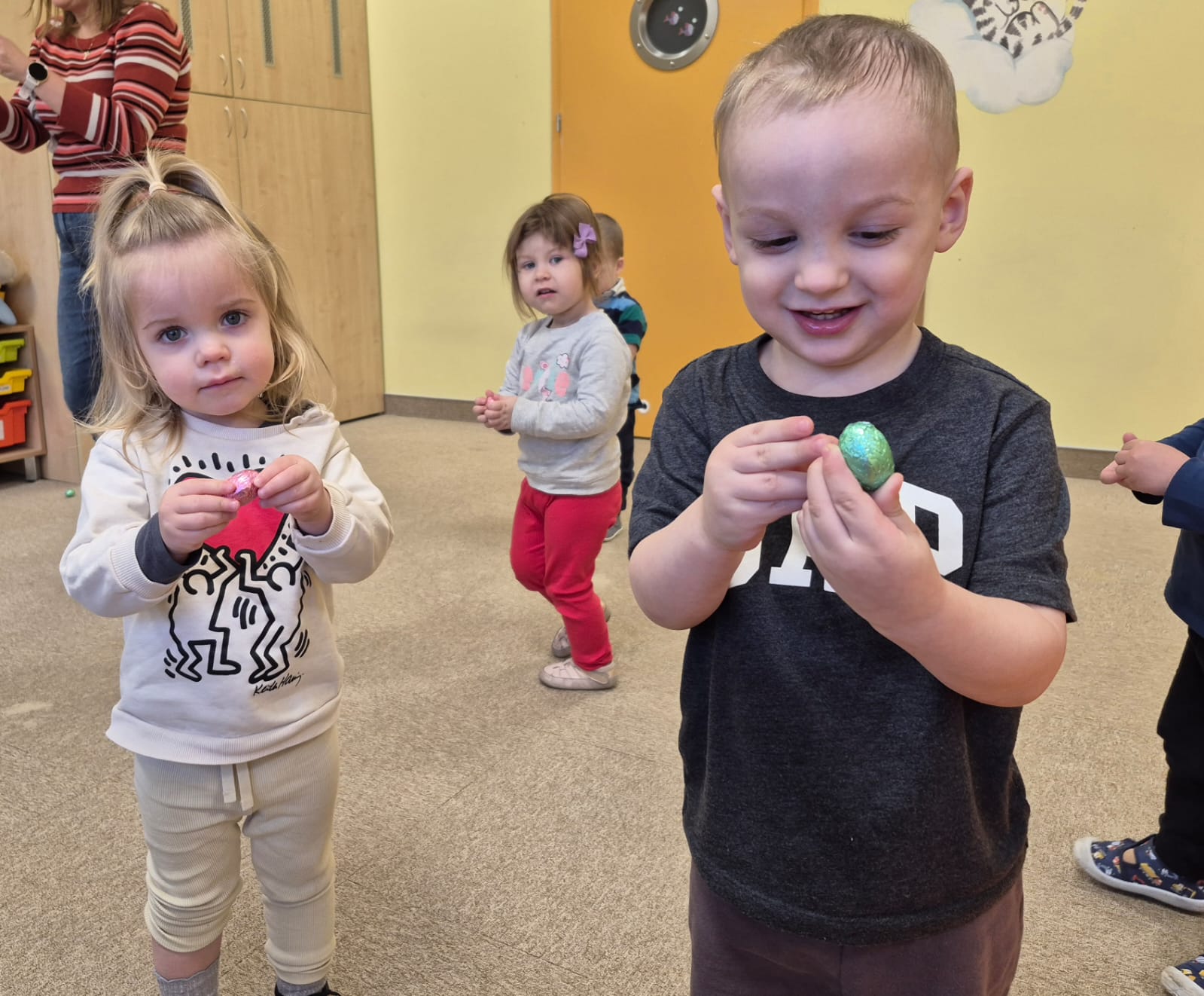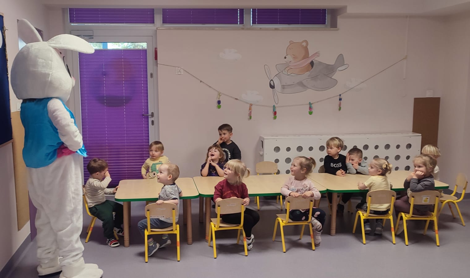 Natomiast 1 kwietnia spotkała nas niezwykła niespodzianka – do żłobka zawitał Zajączek! Przyniósł dzieciom cudowne prezenty, które wywołały wiele radości i uśmiechów na ich twarzach. Był to dzień pełen emocji i niezapomnianych chwil. Na zakończenie tego wyjątkowego dnia Pani Dyrektor wręczyła dzieciom dyplomy oraz nagrody za udział w konkursie „Zajączek Wielkanocny”