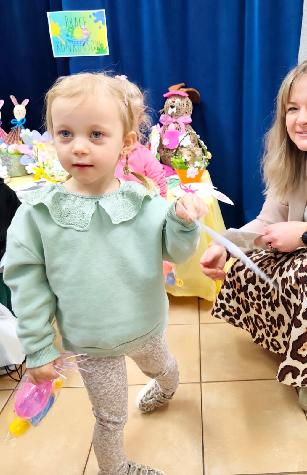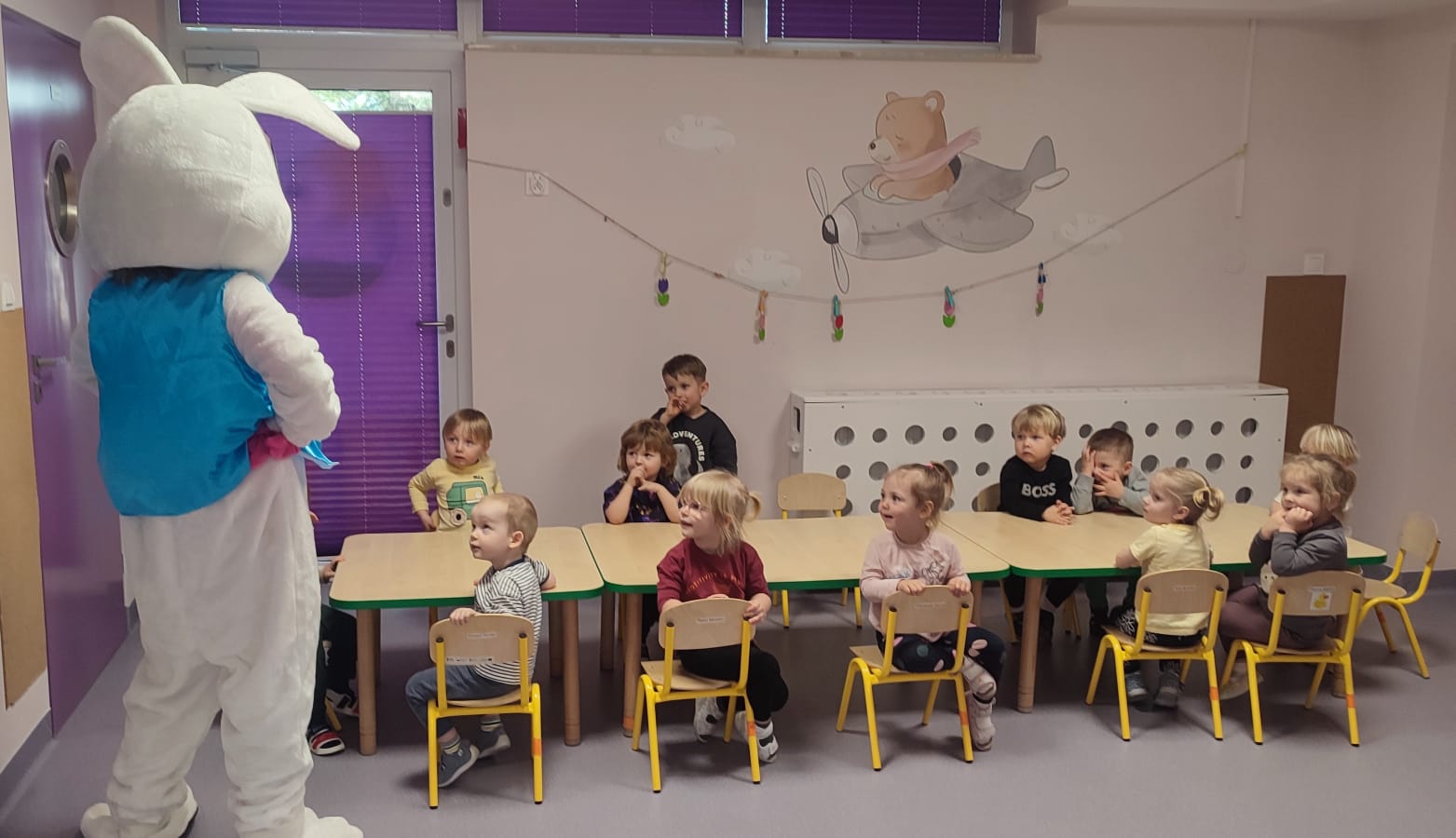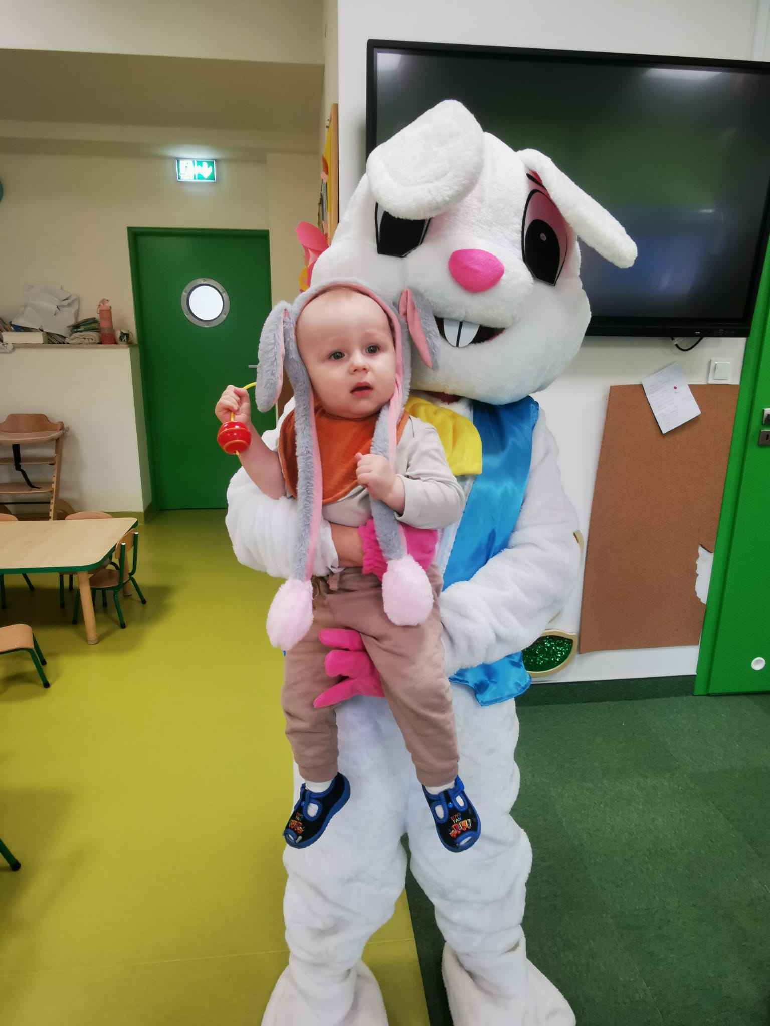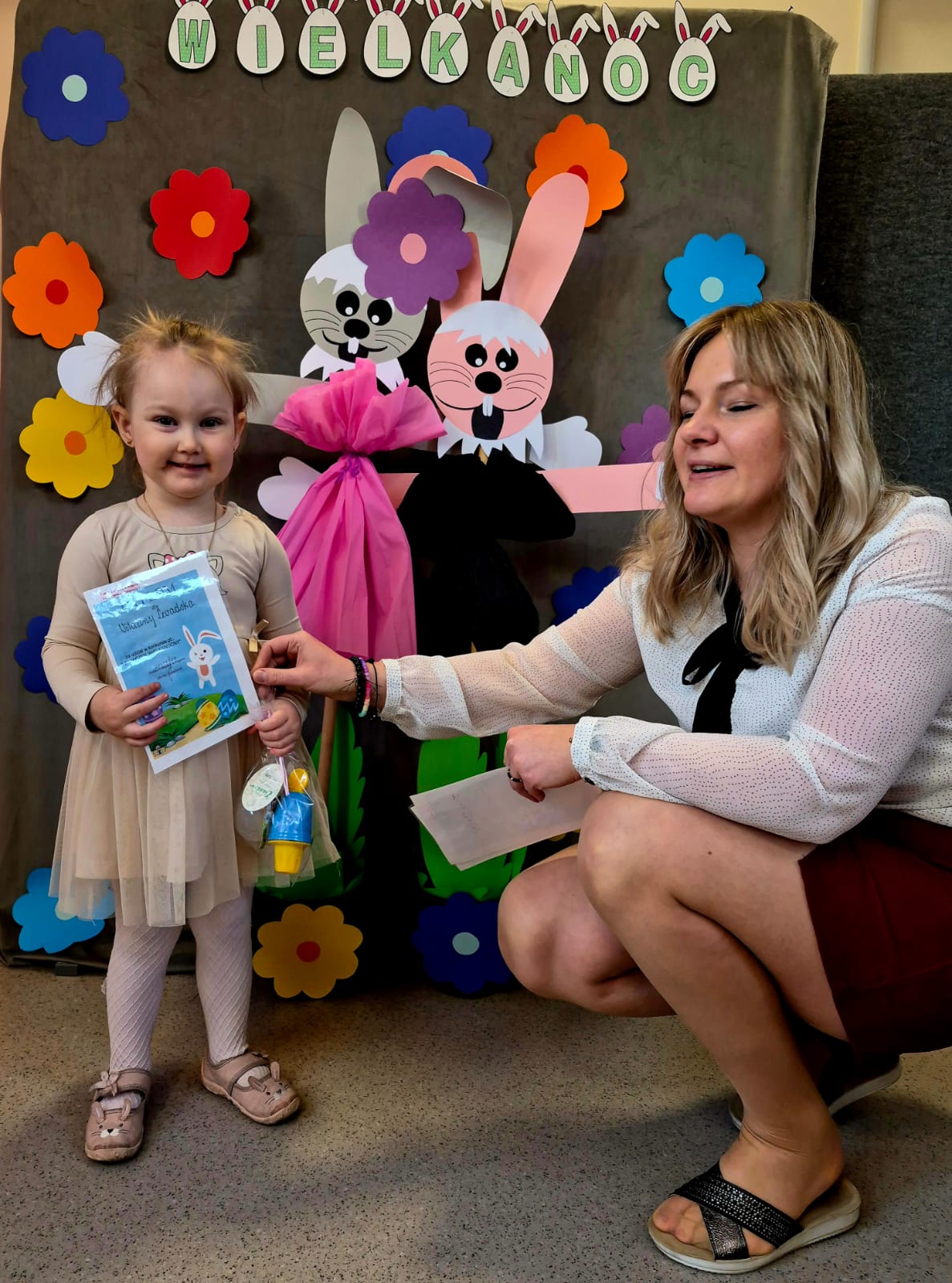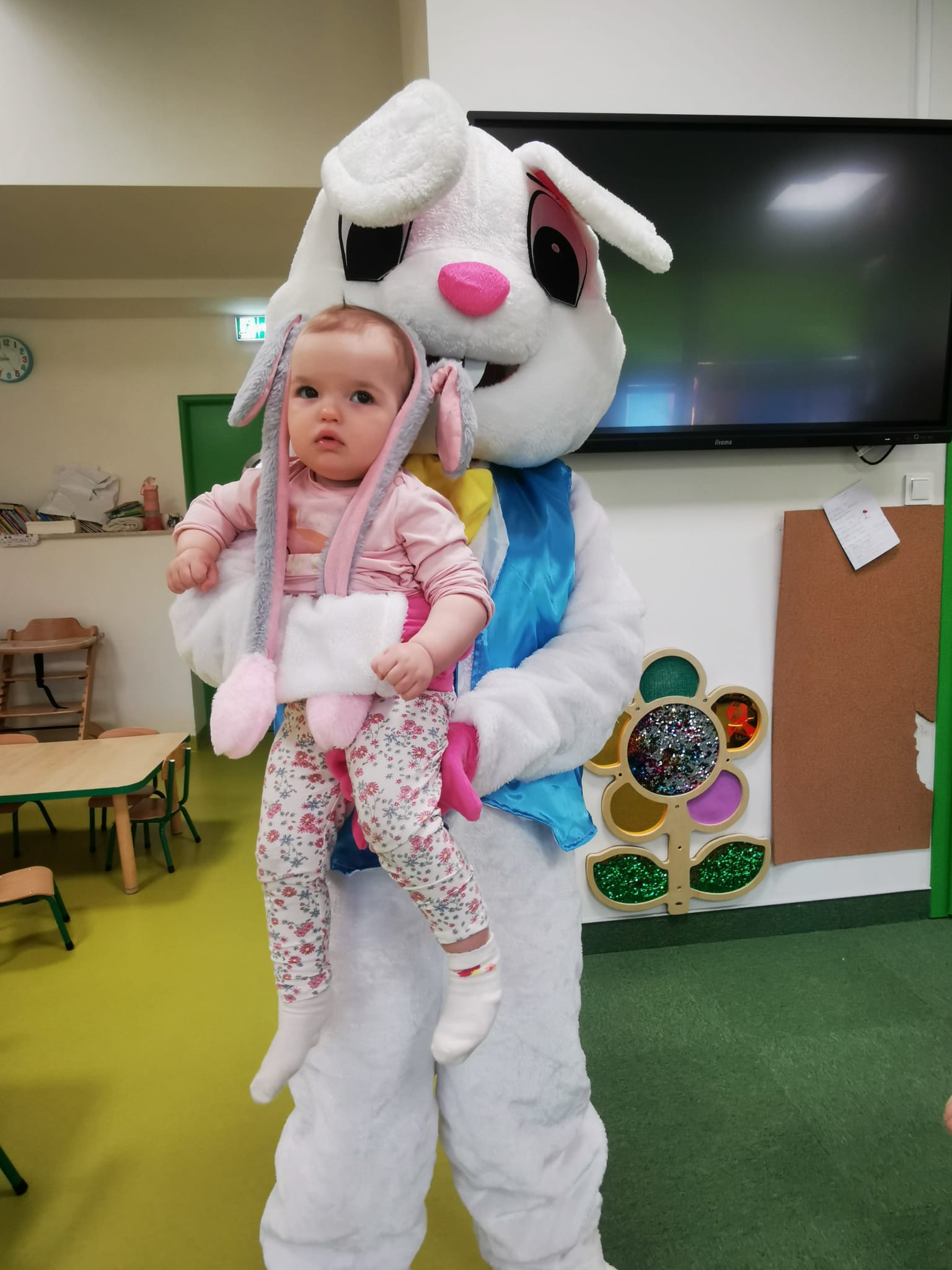 Natomiast 1 kwietnia spotkała nas niezwykła niespodzianka – do żłobka zawitał Zajączek! Przyniósł dzieciom cudowne prezenty, które wywołały wiele radości i uśmiechów na ich twarzach. Był to dzień pełen emocji i niezapomnianych chwil. Na zakończenie tego wyjątkowego dnia Pani Dyrektor wręczyła dzieciom dyplomy oraz nagrody za udział w konkursie „Zajączek Wielkanocny”
