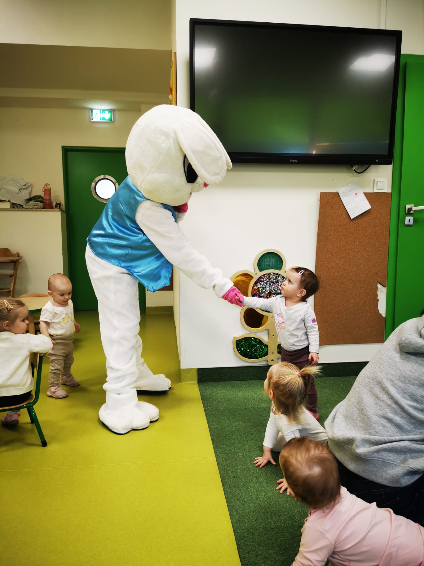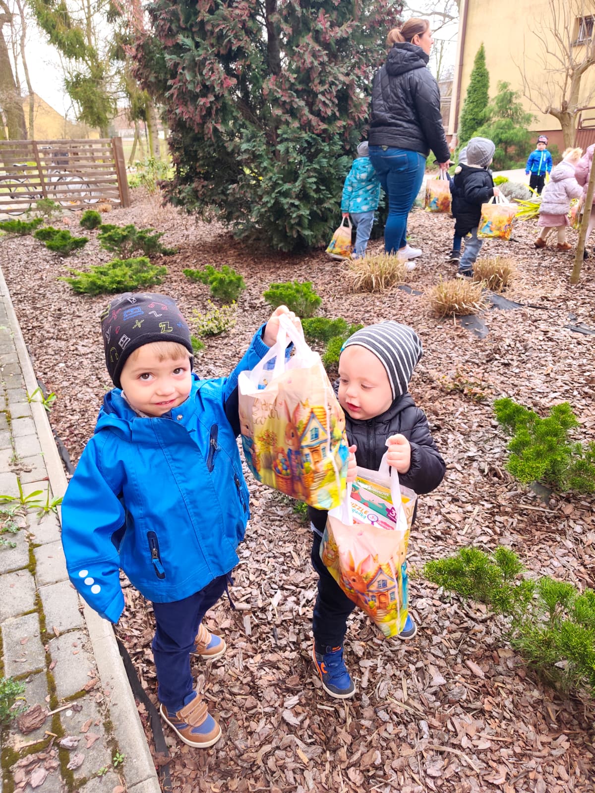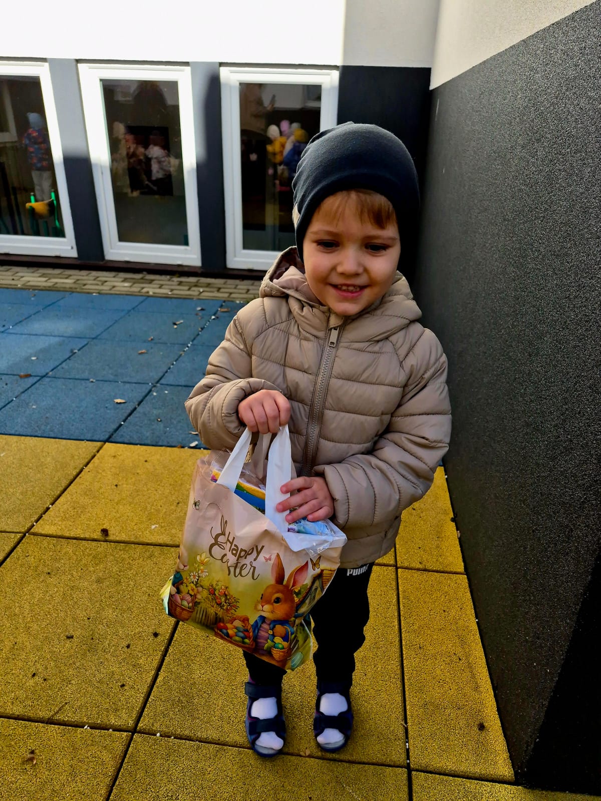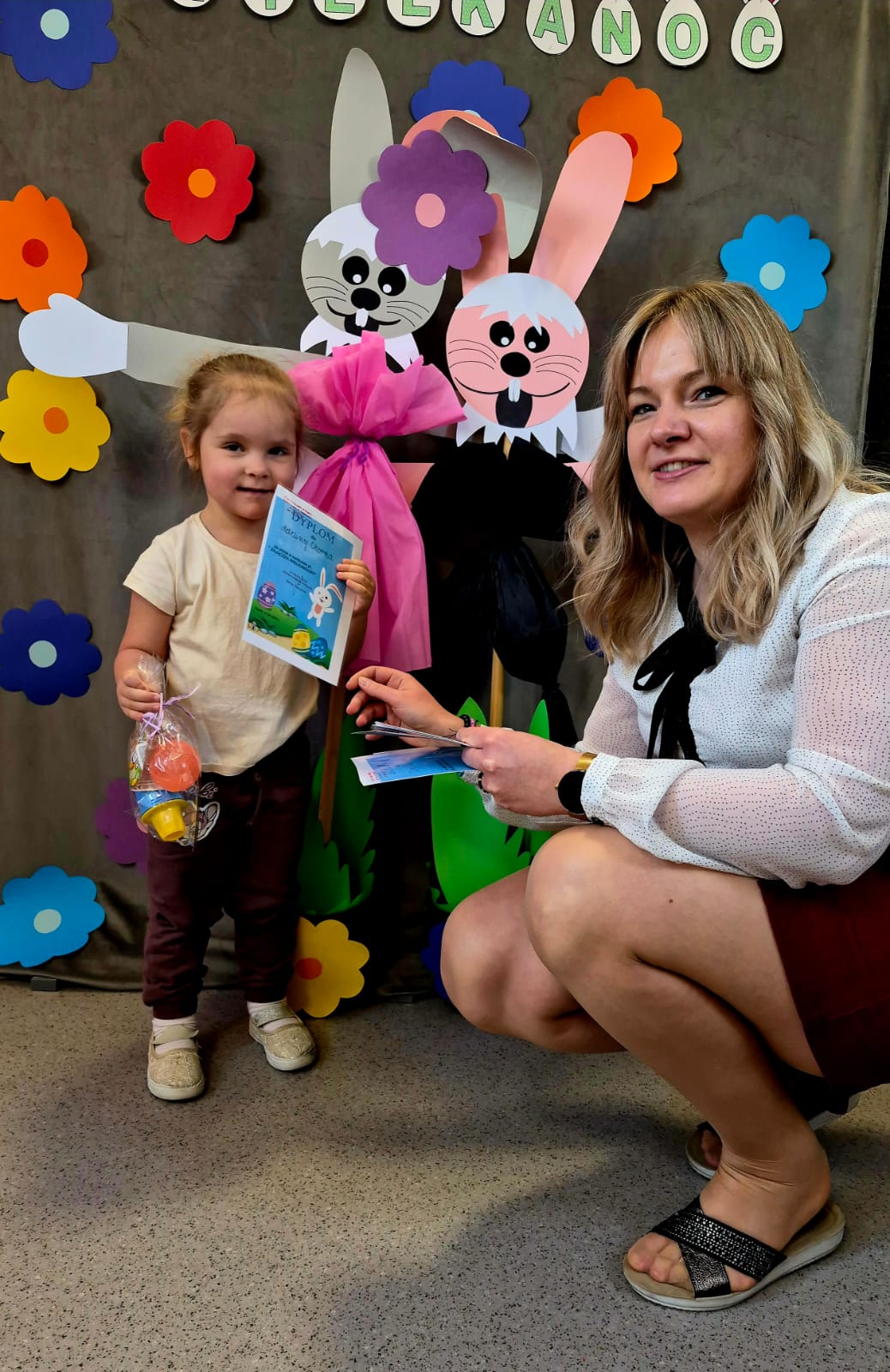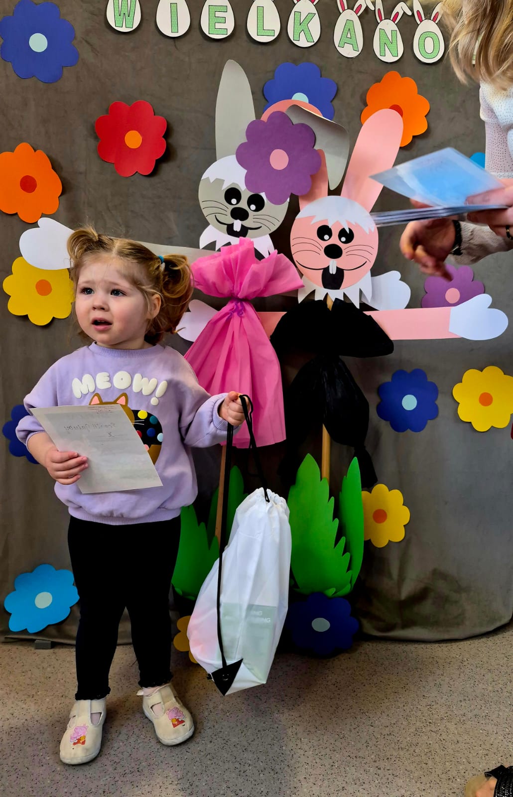 Natomiast 1 kwietnia spotkała nas niezwykła niespodzianka – do żłobka zawitał Zajączek! Przyniósł dzieciom cudowne prezenty, które wywołały wiele radości i uśmiechów na ich twarzach. Był to dzień pełen emocji i niezapomnianych chwil. Na zakończenie tego wyjątkowego dnia Pani Dyrektor wręczyła dzieciom dyplomy oraz nagrody za udział w konkursie „Zajączek Wielkanocny”