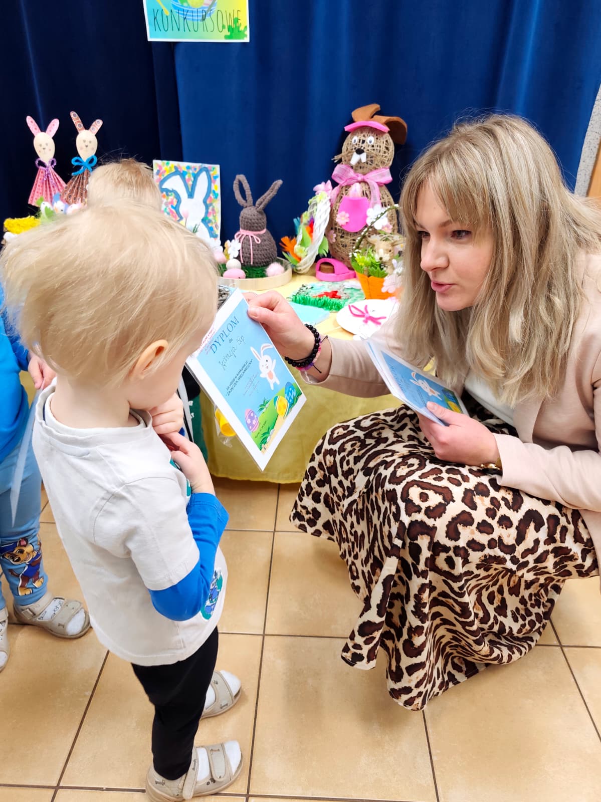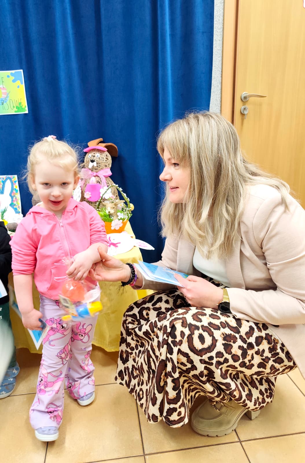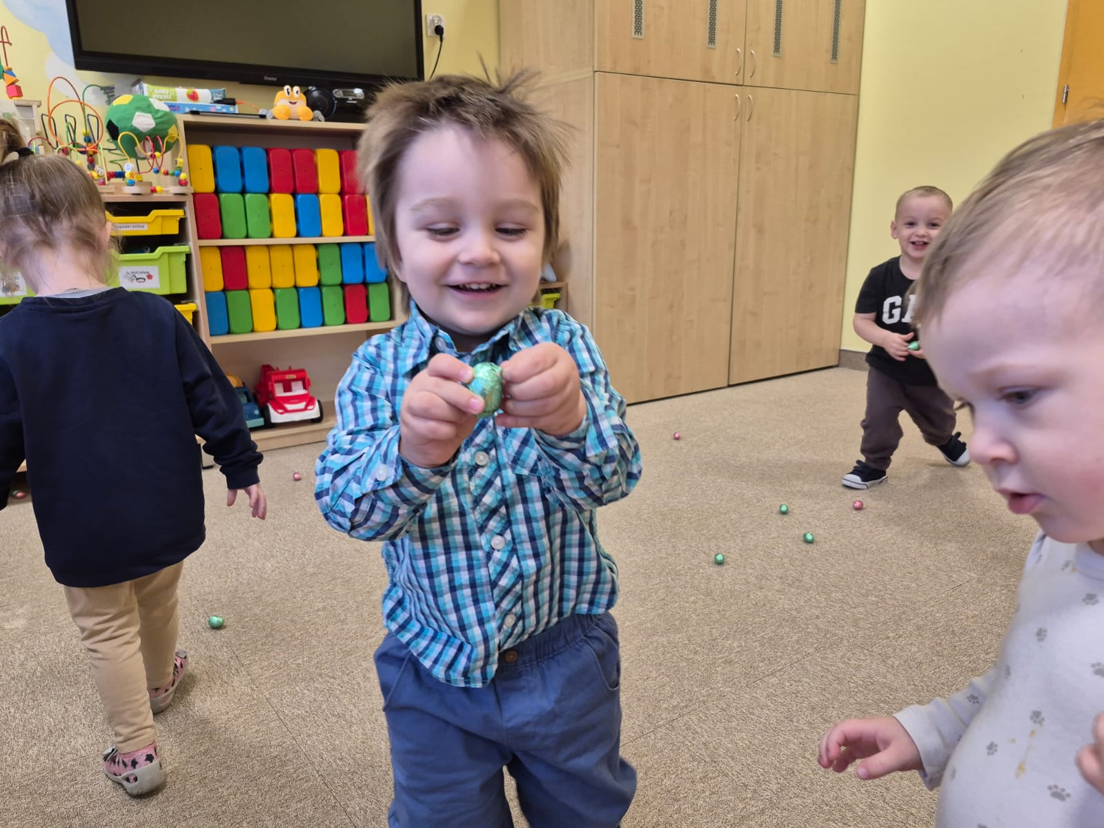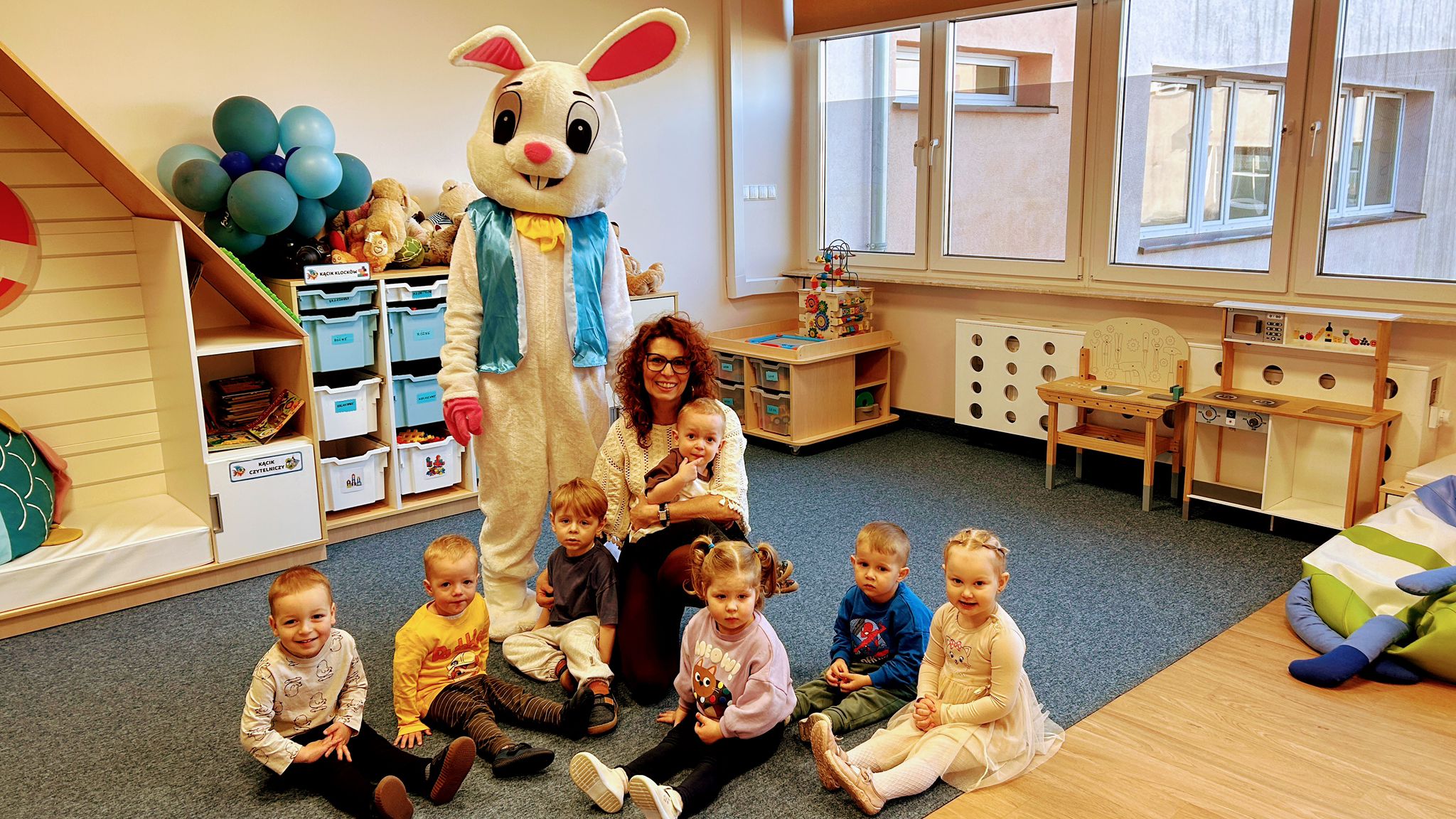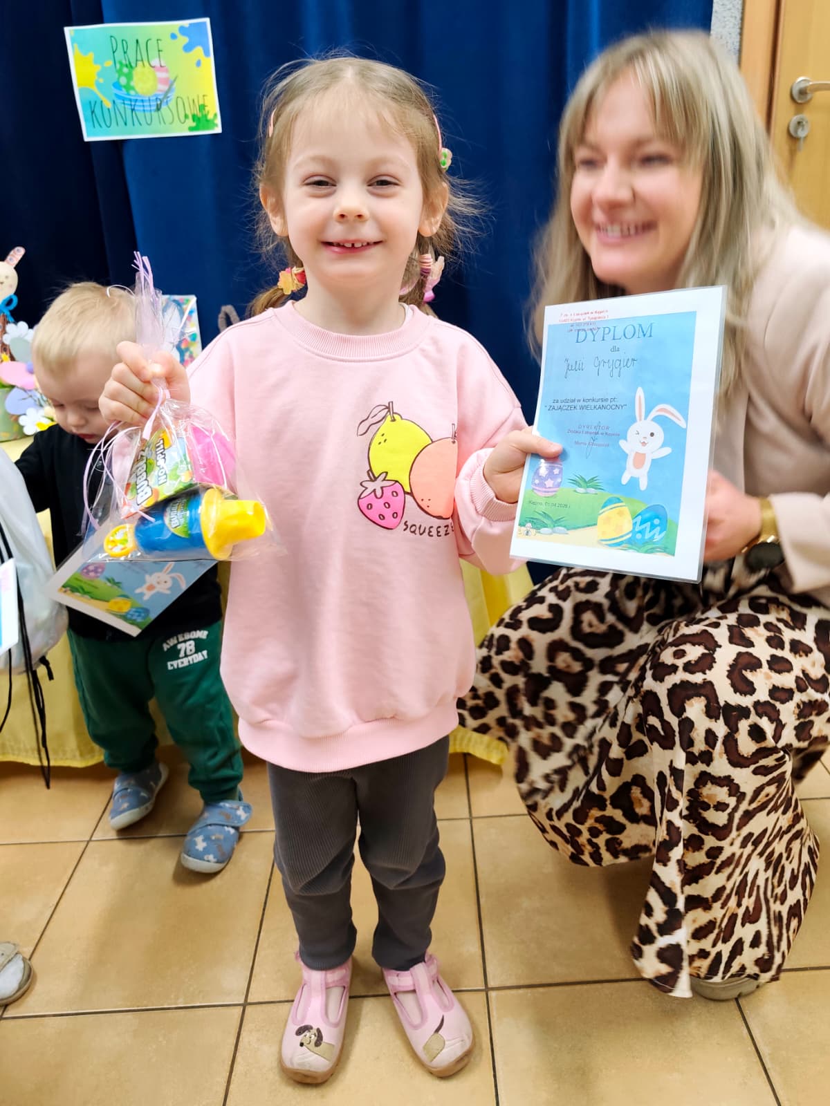 Natomiast 1 kwietnia spotkała nas niezwykła niespodzianka – do żłobka zawitał Zajączek! Przyniósł dzieciom cudowne prezenty, które wywołały wiele radości i uśmiechów na ich twarzach. Był to dzień pełen emocji i niezapomnianych chwil. Na zakończenie tego wyjątkowego dnia Pani Dyrektor wręczyła dzieciom dyplomy oraz nagrody za udział w konkursie „Zajączek Wielkanocny”