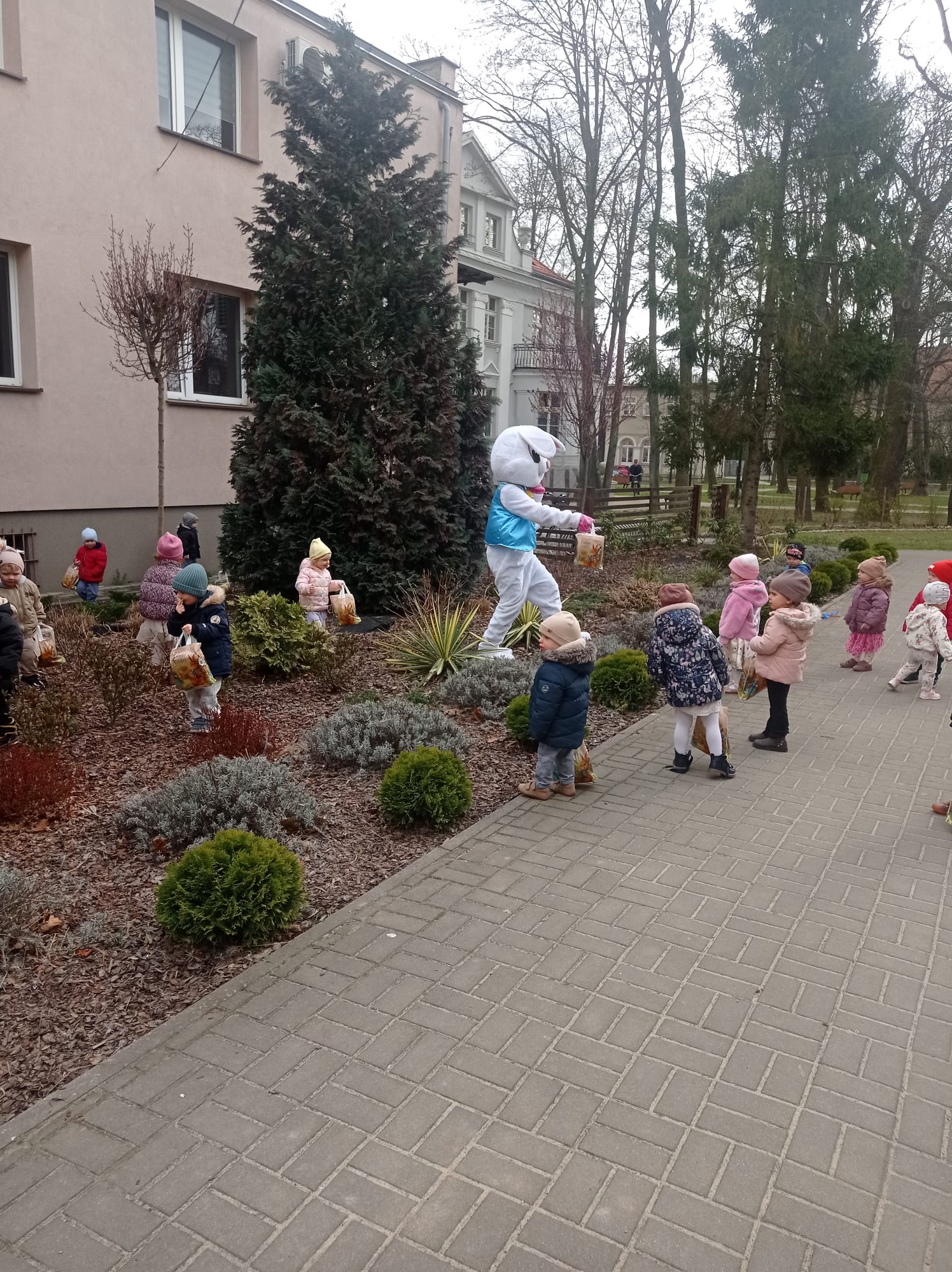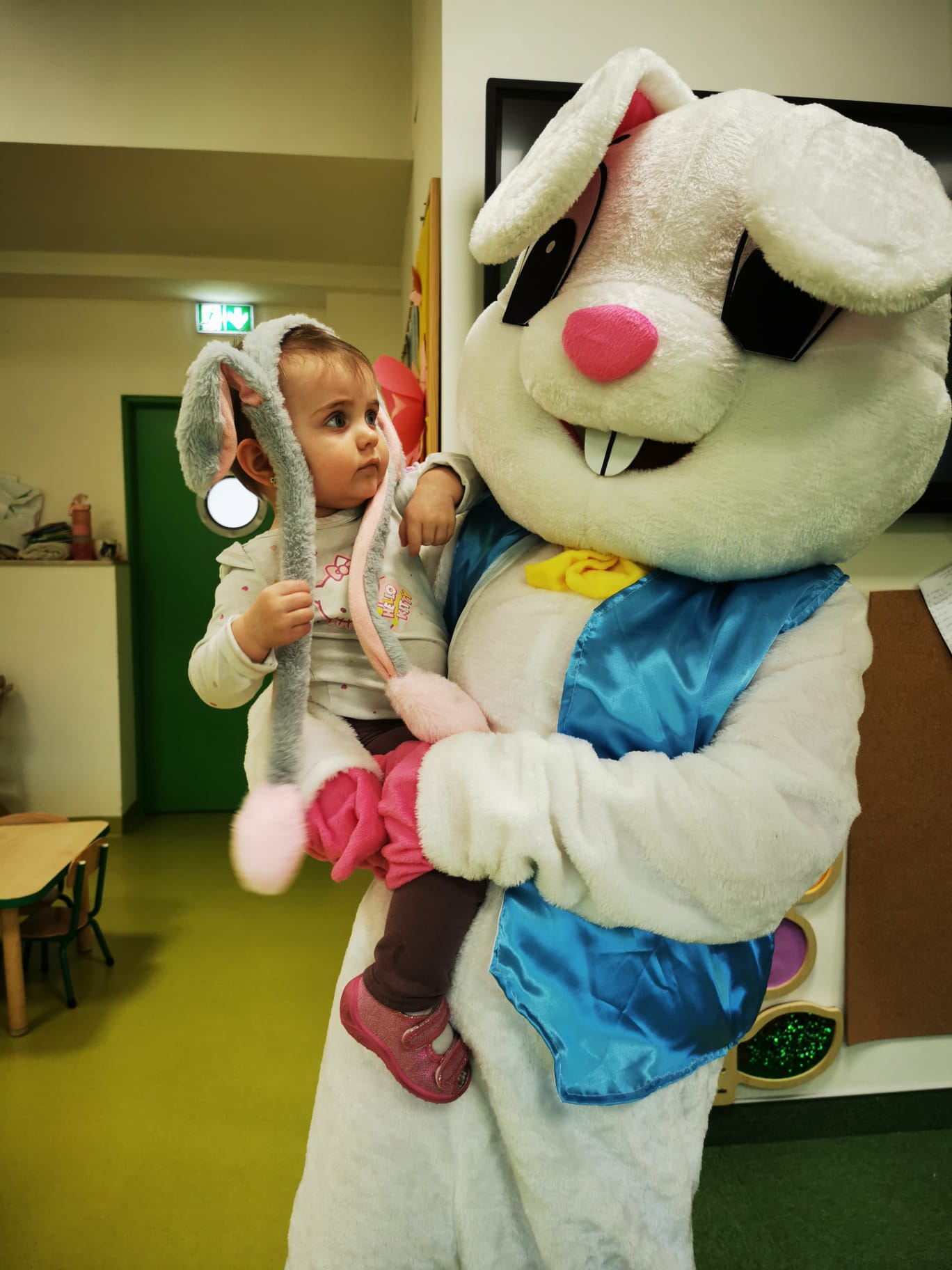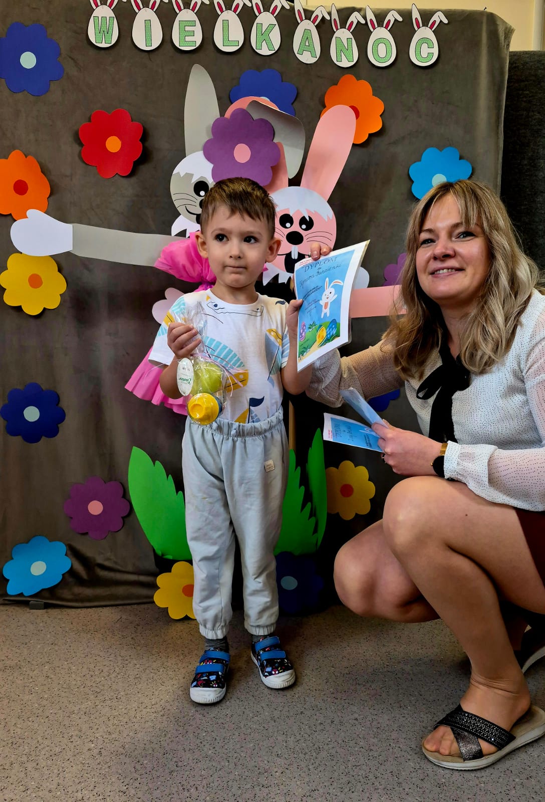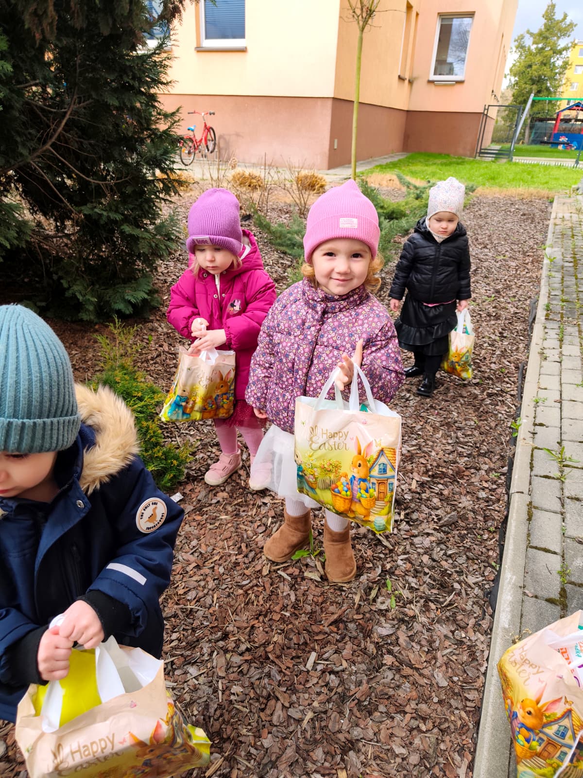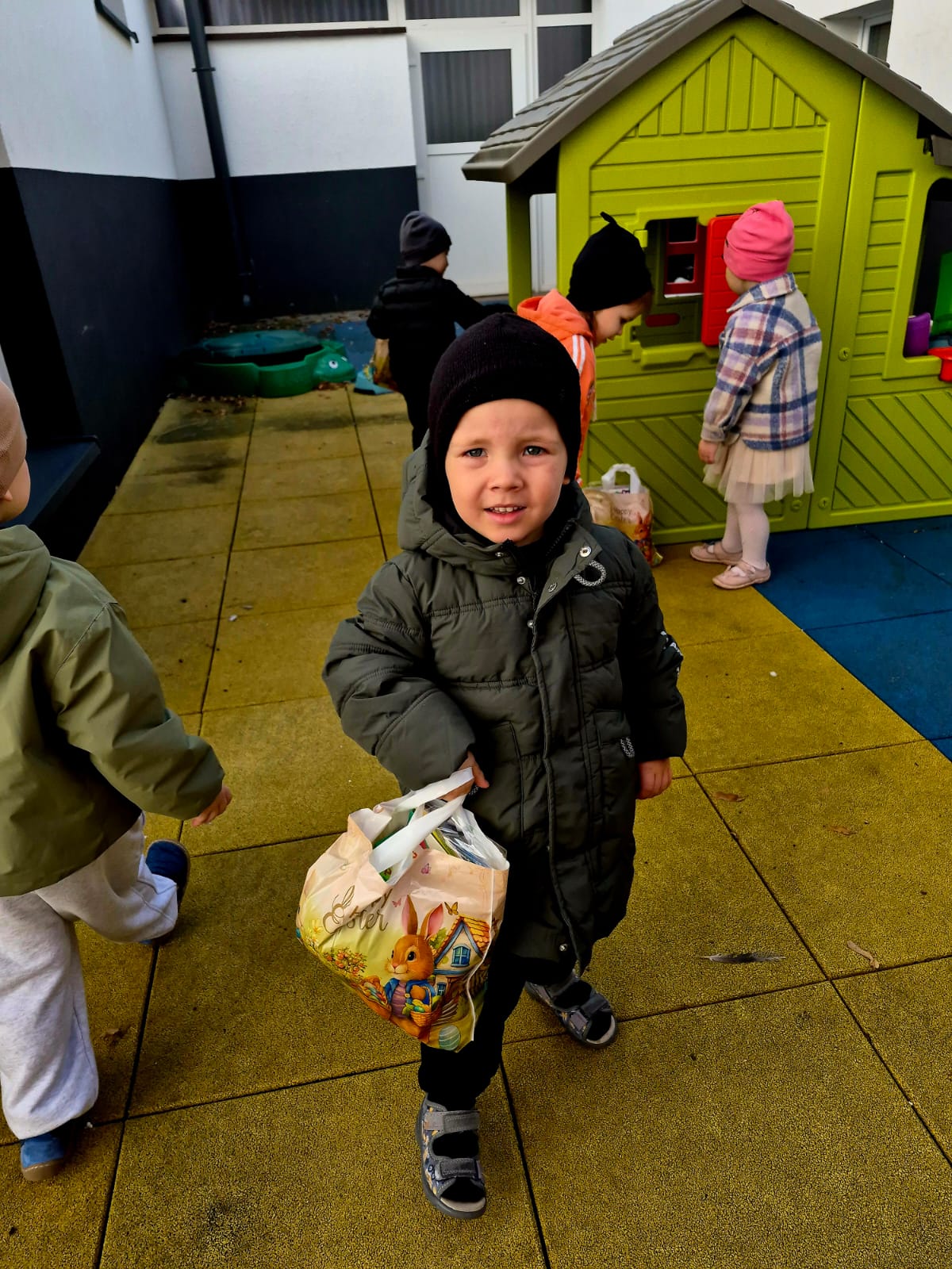 Natomiast 1 kwietnia spotkała nas niezwykła niespodzianka – do żłobka zawitał Zajączek! Przyniósł dzieciom cudowne prezenty, które wywołały wiele radości i uśmiechów na ich twarzach. Był to dzień pełen emocji i niezapomnianych chwil. Na zakończenie tego wyjątkowego dnia Pani Dyrektor wręczyła dzieciom dyplomy oraz nagrody za udział w konkursie „Zajączek Wielkanocny”